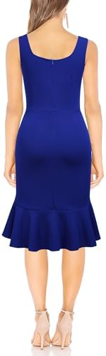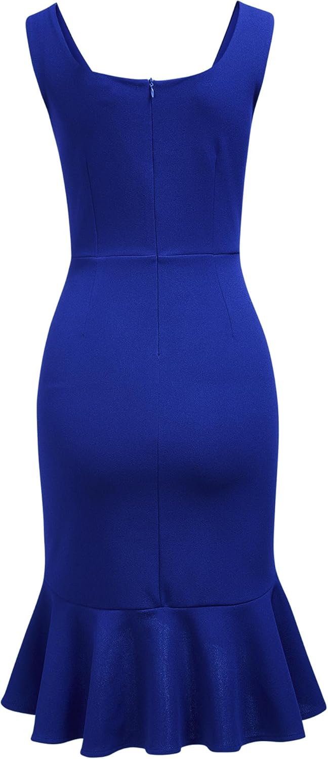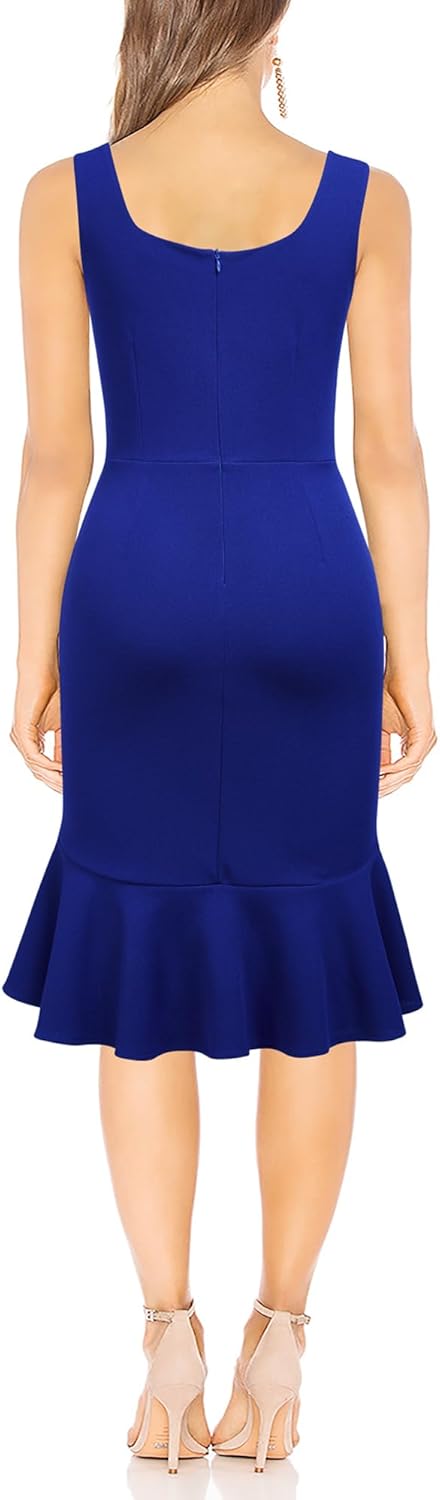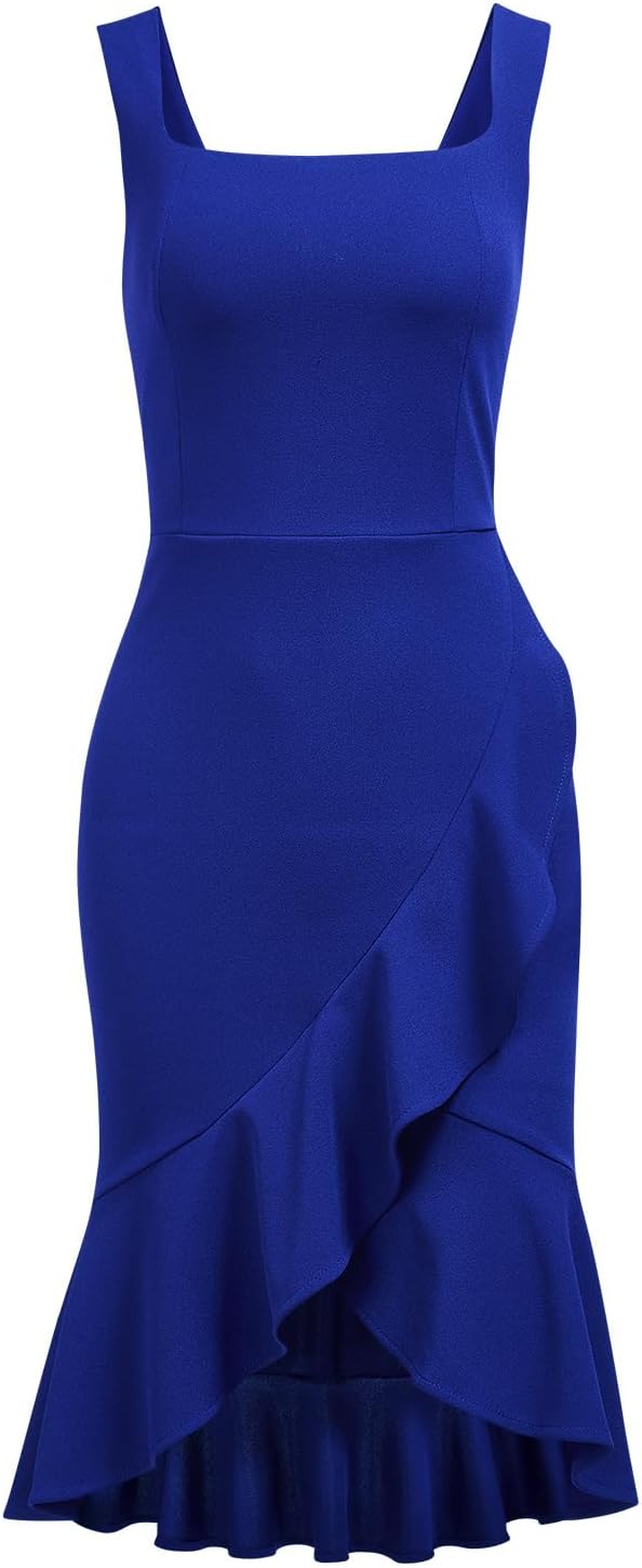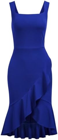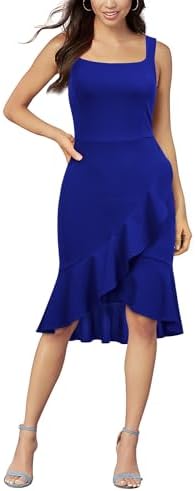 FORTRIC Women Square Neck Summer Wedding Guest Formal Party Cocktail Midi Dress