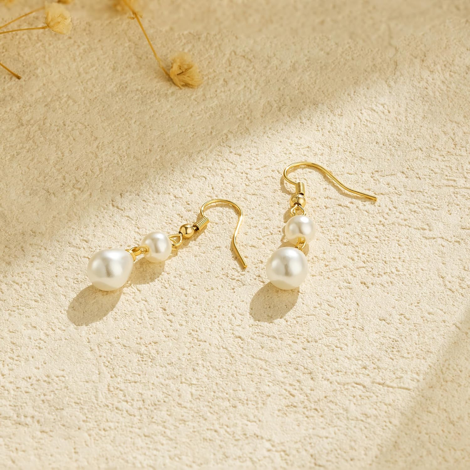 - GOLD EARRINGS JEWELRY MATERIAL: Trendy pearl earrings are made of real gold plating over brass, which keep tarnish-free, lead-free, hypoallergenic, long-lasting; Handpicked AAA+ Quality Freshwater Cultured Pearl Earrings for women with an elegant look