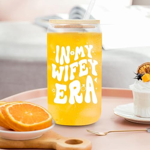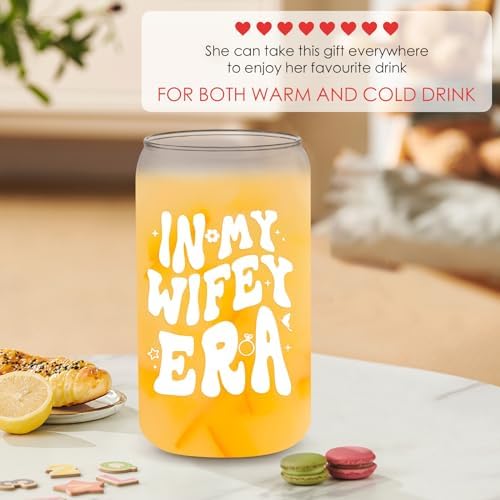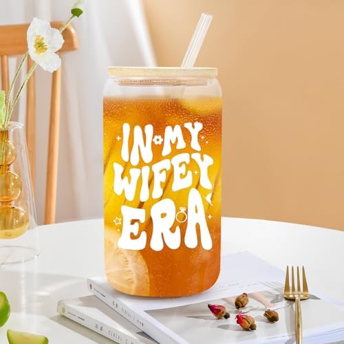- Bride To Be Gifts In Wifey Era: Are you still troubled by not knowing what gift to give the bride? Please look no further! She will love this can glass is printed with funny “in my wifey era”, which is symbolizing love, commitment, and anticipation for the journey as a wife. An ideal engagement gift for bride to be, newly engaged friend, fiancee, the future Mrs, bestie or any other women in her wifey era. Made the big day feel even more special with this wedding gift for a bride to be