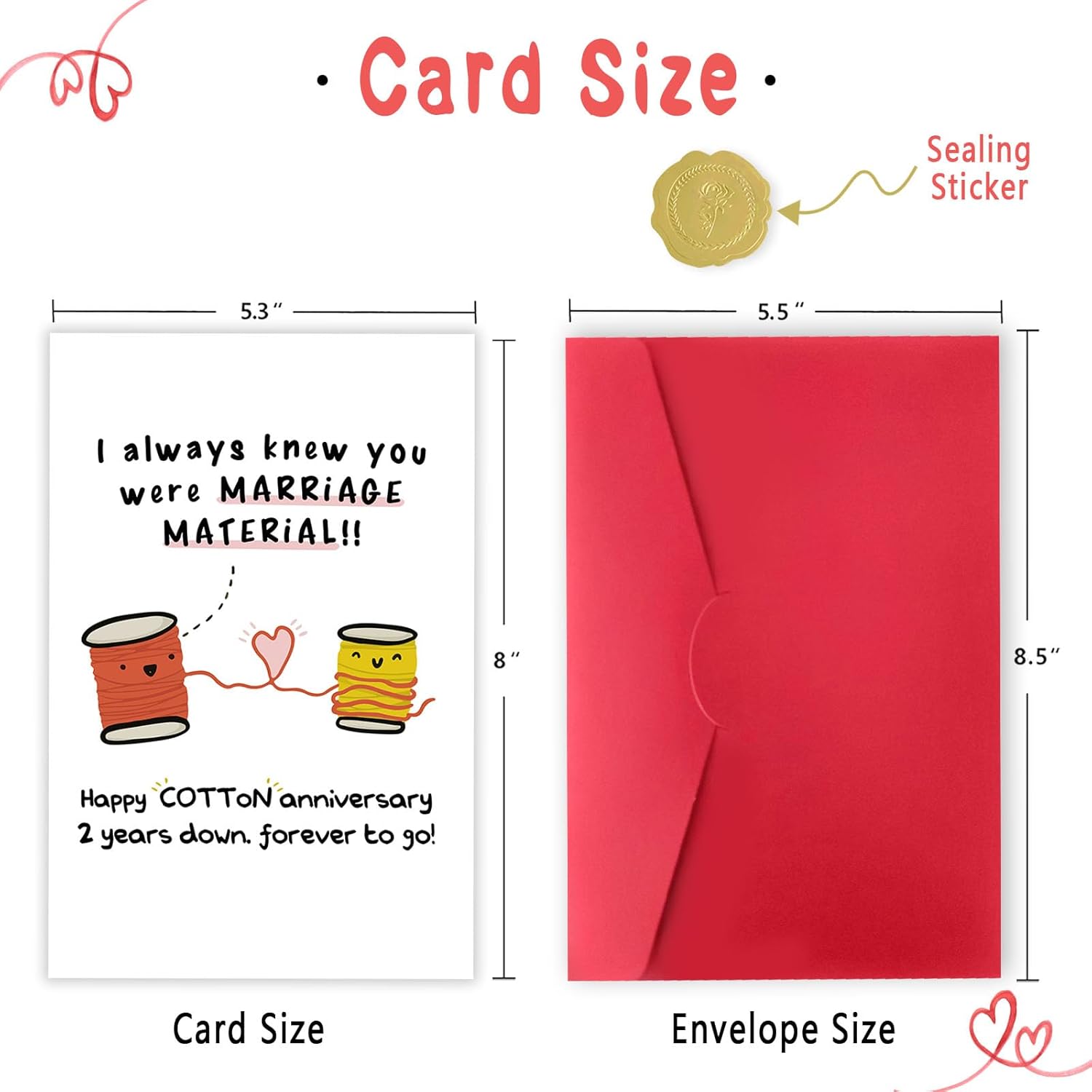 - 【Product Packaging】A 8×5.3 inches wedding anniversary card gift and a red envelope.