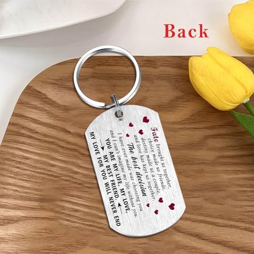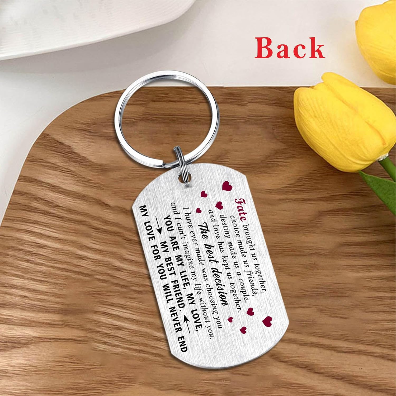 • Double Side Engraved Keychain – Fate brought us together, choice made us friends, destiny made us a couple, and love has kept us together. The best decision i have ever made was choosing you and i can’t imagine my life without you…