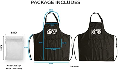- 🎁 READY TO GIFT – This Couple Aprons set comes with everything you need ready to go. (2) Aprons and (1) Gift Bag. Feel free to also add your own creative/personal touch