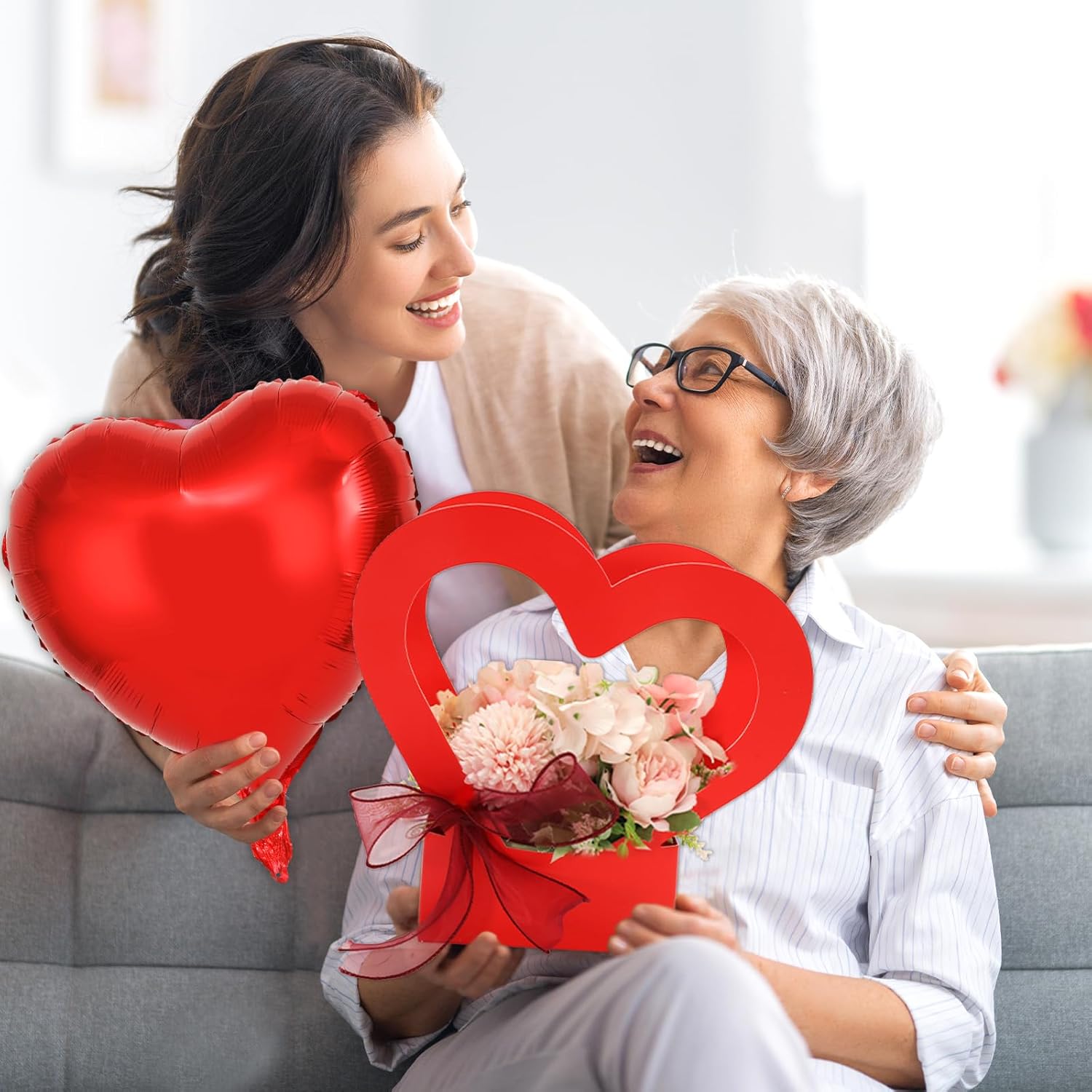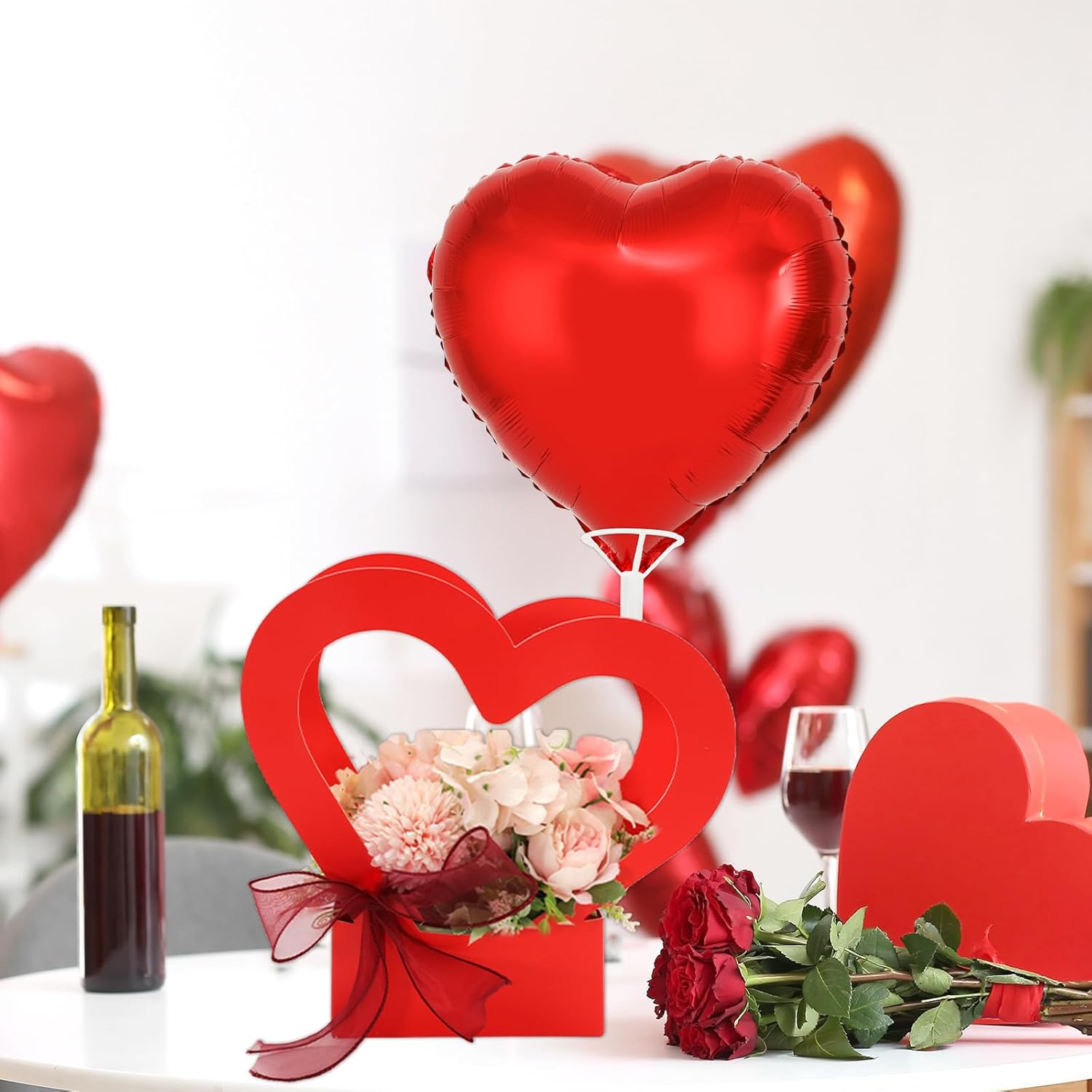 - SWEET HEART THEME: Our flower arrangement box sets are featuring the red heart theme, with heart shaped boxes and foil balloons, quite fit for the sweet holiday use, can well add romantic touch