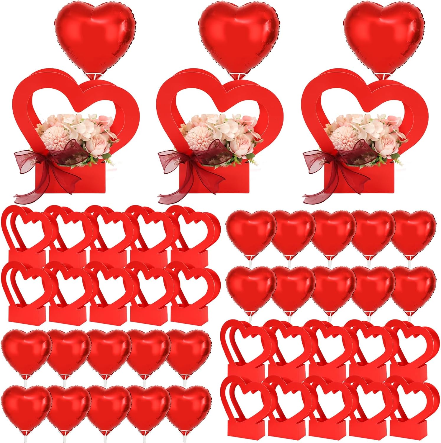 - YOU WILL GET: 20 pieces heart flower wrap bags, matched with 20 pieces foil heart balloons, 20 pieces balloon sticks and 2 rolls ribbons, complete pack and sufficient for floral wrap