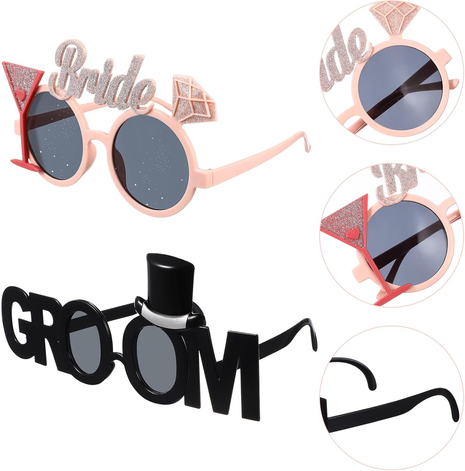 - Material: Crafted from plastic, these vintage-style sunglasses not only look chic but are also built to last. The exquisite craftsmanship ensures that every detail of the Bride Groom Glasses stands out, making them a must-have for your wedding celebrations