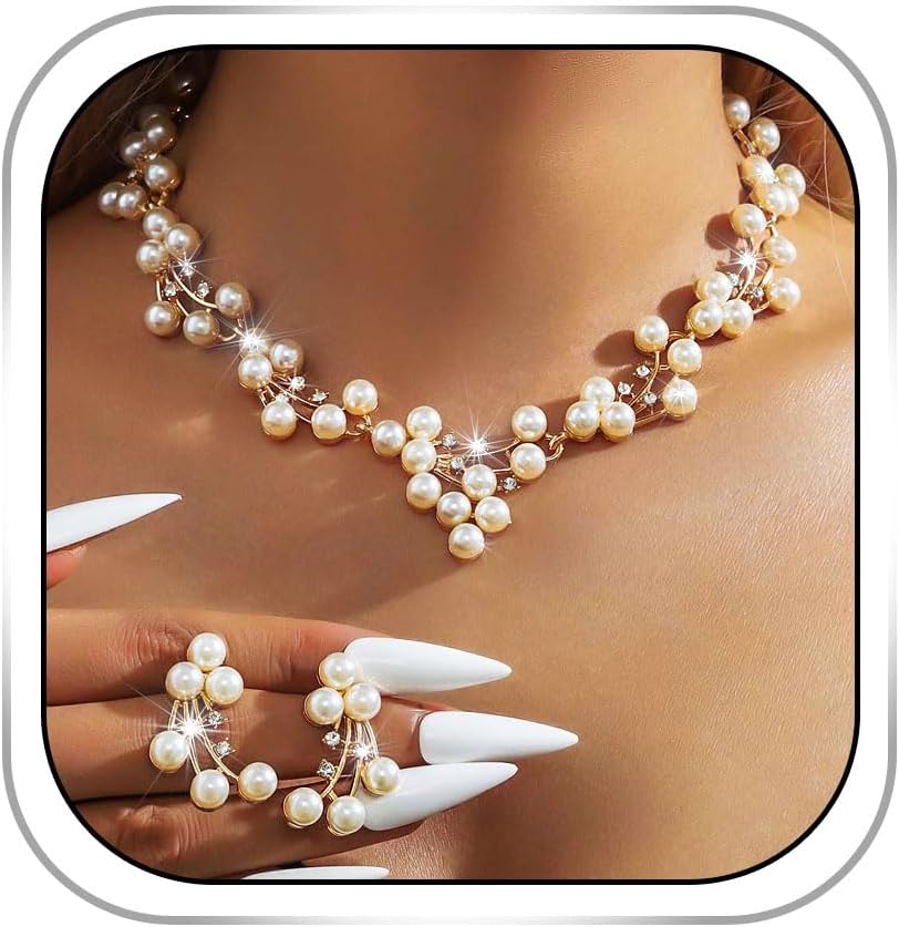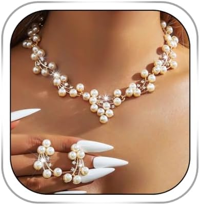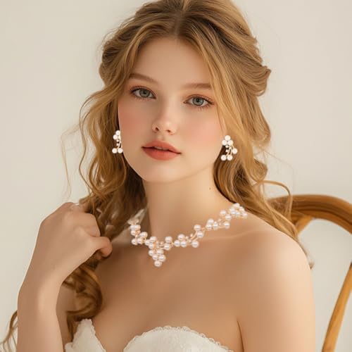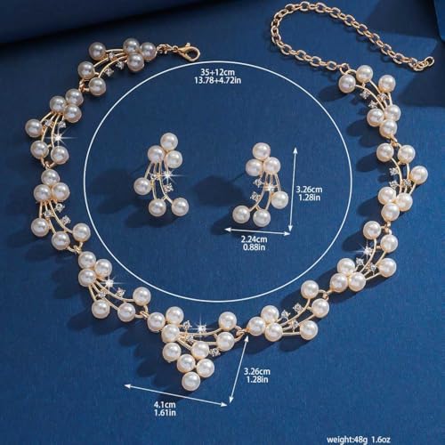 Gangel Pearl Necklace and Earring Set Faux Pearl Necklaces Choker Bridal Jewelry Sets for Wedding Gold