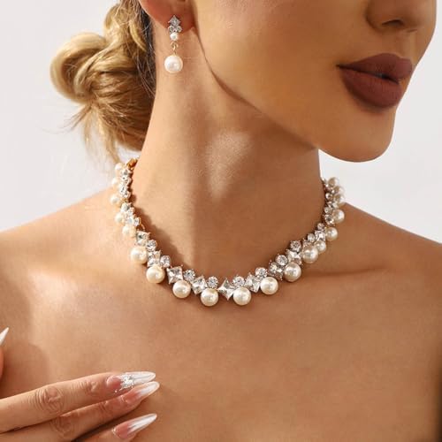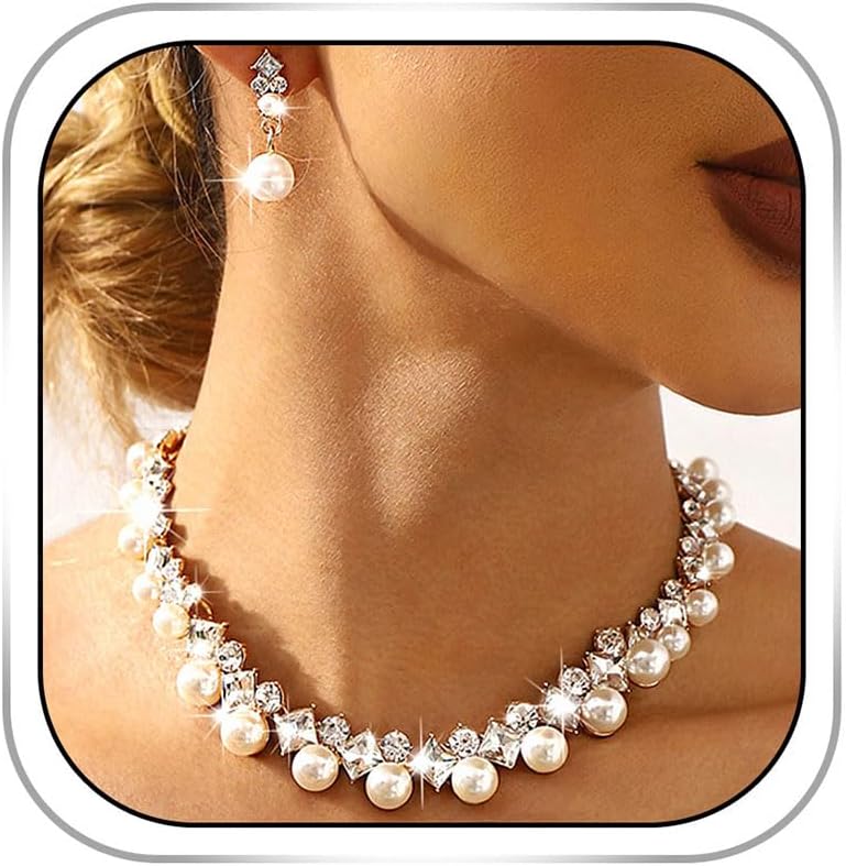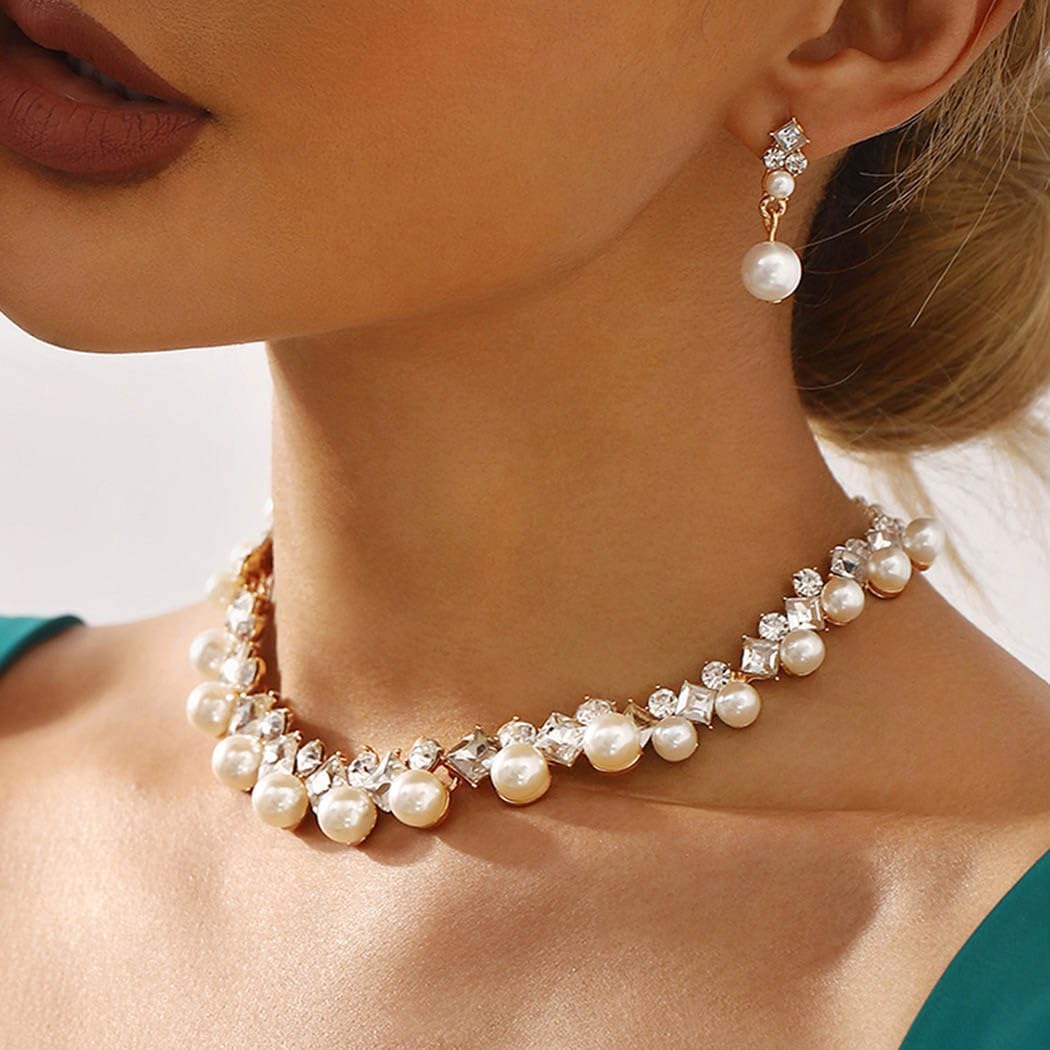 - Rhinestone pearl necklace are made of faux pearl and rhinestone threading, well made and won’t hurt your skin if you wear it for a long time.Necklace will you get more compliments