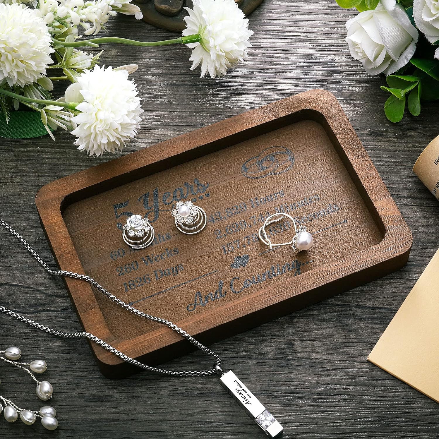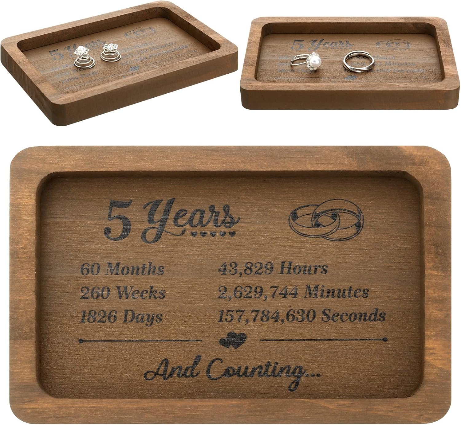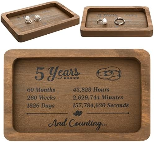 - Meaningful Engraved Words: our rectangle anniversary wood tray for crafts is engraved with words [5 years, 60 months, 260 weeks, 1826 days, 43829 hours, 2629744 minutes 157784630 seconds and counting], which means loyalty and commitment to love, meaningful and memorable