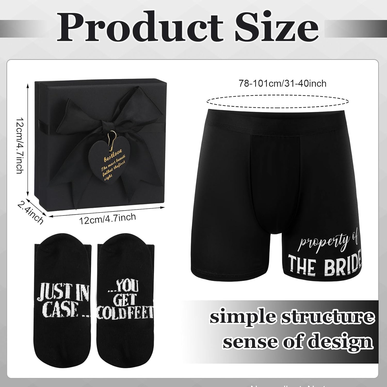 • Fun Groom Gift Set: boxer briefs with ” Property Of The Bride” printed on them, and socks with ” Just In Case ; ; ; ” printed on them, add an element of humor and surprise to your loved one, and are a fun wedding gift for the groom to add a different kind of fun to your wedding