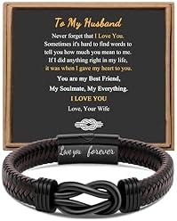 - Husband Gifts from Wife 💖 Braided Leather Bracelet symbolizes that life between you and the recipient is intertwined forever and will never be separated. This cuff bracelet will be with them side by side, wherever they go so she can feel that you are always there for them. Give the leather bracelet to the man you love will remind him how important he is