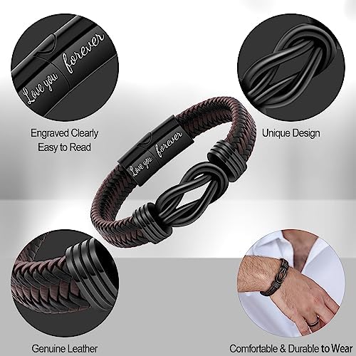 - Special Design ✨ The leather bracelet is designed simply and generously, with brown braided rope and Infinity Knot, Showing off fashion. Men bracelet is engraved with “love you forever”, which is able to convey the meaning of your love. This cuff bracelet will surely melt their heart