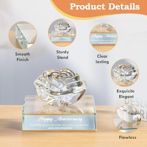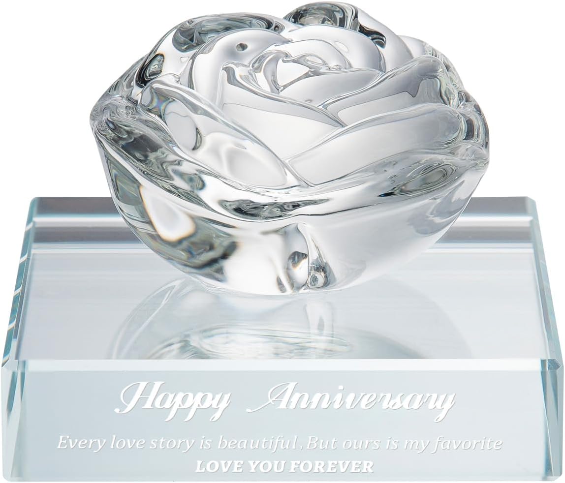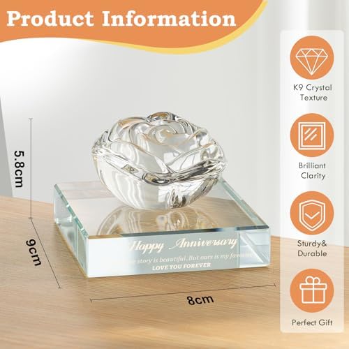 - 💎【PREMIUM K9 CRYSTAL】Expertly crafted from museum-grade K9 crystal, this piece sparkles with diamond-like clarity, mirroring the purity of your love. The weighted base ensures stability, while the scratch-resistant finish keeps surfaces pristine. Laser-engraved romantic quotes (“Happy Anniversary… Ours is My Favorite”) add a personalized touch.