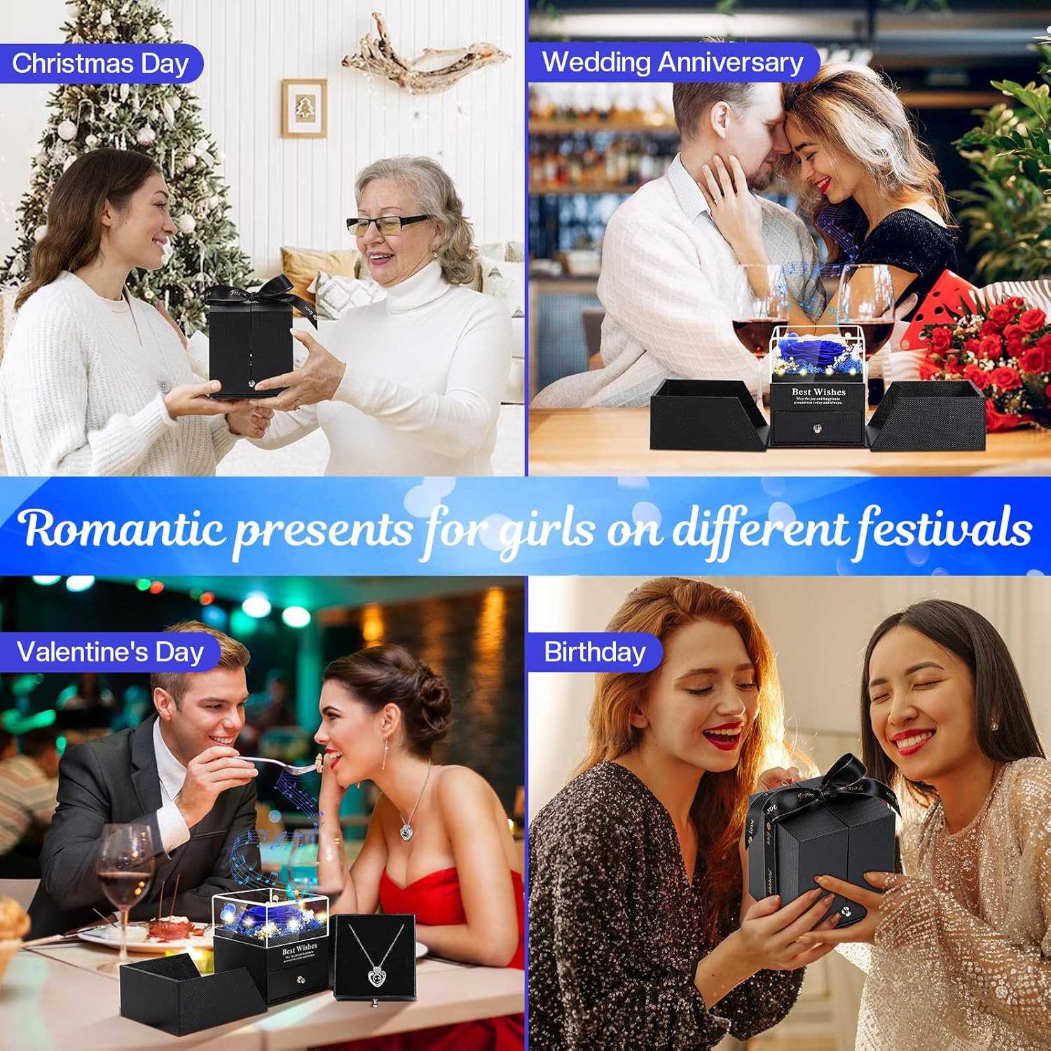 • Birthday Gifts for Women: This beautifully packaged set includes 1 preserved rose and 1 double heart necklace, making it a thoughtful present for birthdays and anniversaries. Whether for your girlfriend, wife, mother, daughter, or grandma, this gift is sure to delight and convey your love