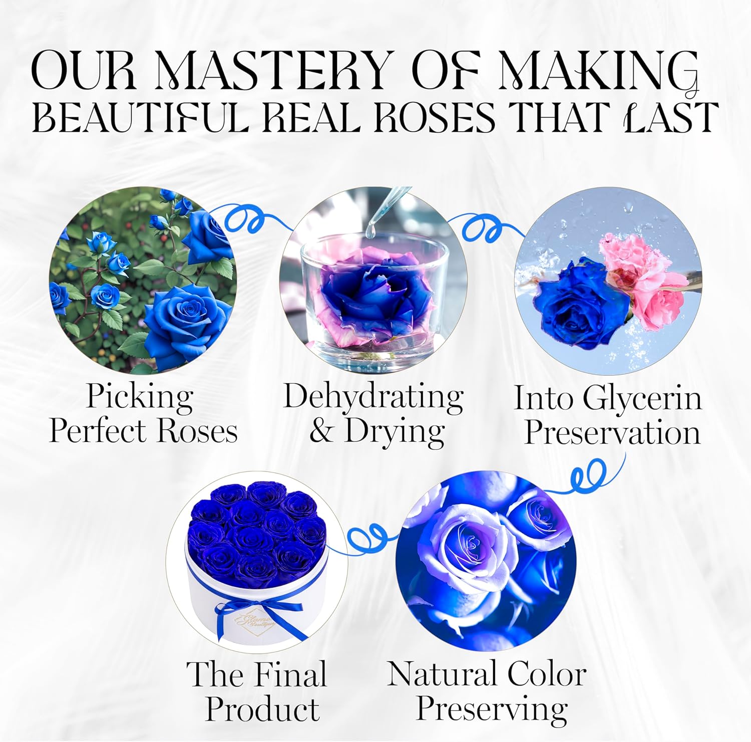 • Long-Lasting Roses: Made of premium fresh rose with a unique preservation process, our flowers box forever lasts for 1 to 3 years. It has a total of 12 roses that are carefully and manually assembled for a personal touch.