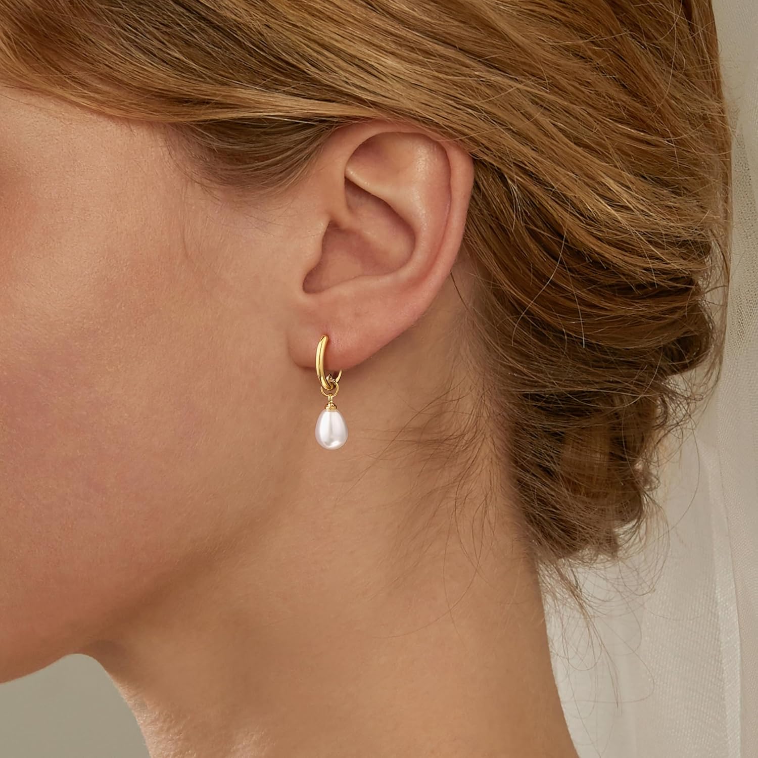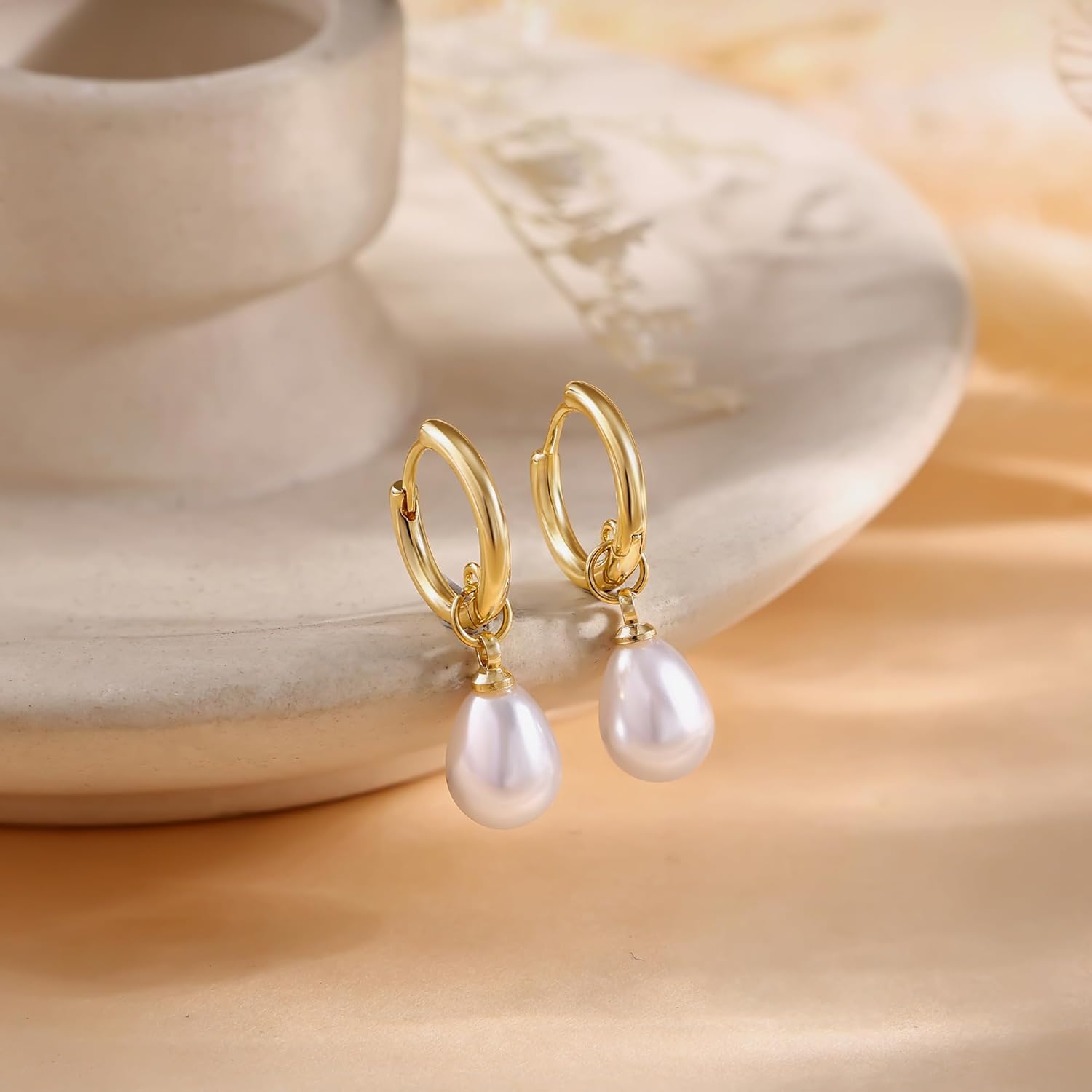 Round Hinged Hoop DesignThis gold drop pearl earring is perfect as daily jewelry, trendy and easy matching with your wardrobe, flexible click closure for convenient to open or close, suitable for womens at any age.HypoallergenicWaterproof S925 post, 14K real gold plated pearl earrings. Lead and nickel free, hypoallergenic gold dangling earrings for women’s sensitive skin. This hypoallergenic earrings won’t turn your skin green or red.GiftableGold plated dangle earrings for women packaged with a delicate jewelry box, the small and dainty teardrop earrings for women is a great gifts idea for girlfriend, mom and grandma on birthday, anniversary, Christmas, Mother’s day.Story of Mother of PearlIrregular gold pearl earrings is a trendy of jewelry. Every pearls is unique in this world. Each pair of our pearl earrings is beautiful and glossy. Versatile Appeal of Gold Pearl EarringsThe gold pearl earrings are versatile jewelry accessories that can elevate your look for a variety of occasions and settings, suitable for wedding, party, summer beach, etc, where they add a touch of sophistication and luxury to your ensemble. Pearl Jewelry Tips1) Avoid direct contact with heat or prolonged exposure to sunlight.2) Remove the 14k real gold pearl earrings before showering and store the pearl hoop earrings properly.3) Avoid using solvents or chemicals such as perfumes or soaps. Dry with a clean towel.4) Clean in a safe place, avoiding the sink edge to prevent accessories from slipping into the drain.5) Use a soft brush only, avoiding sharp or hard objects to clean dirt or particles.