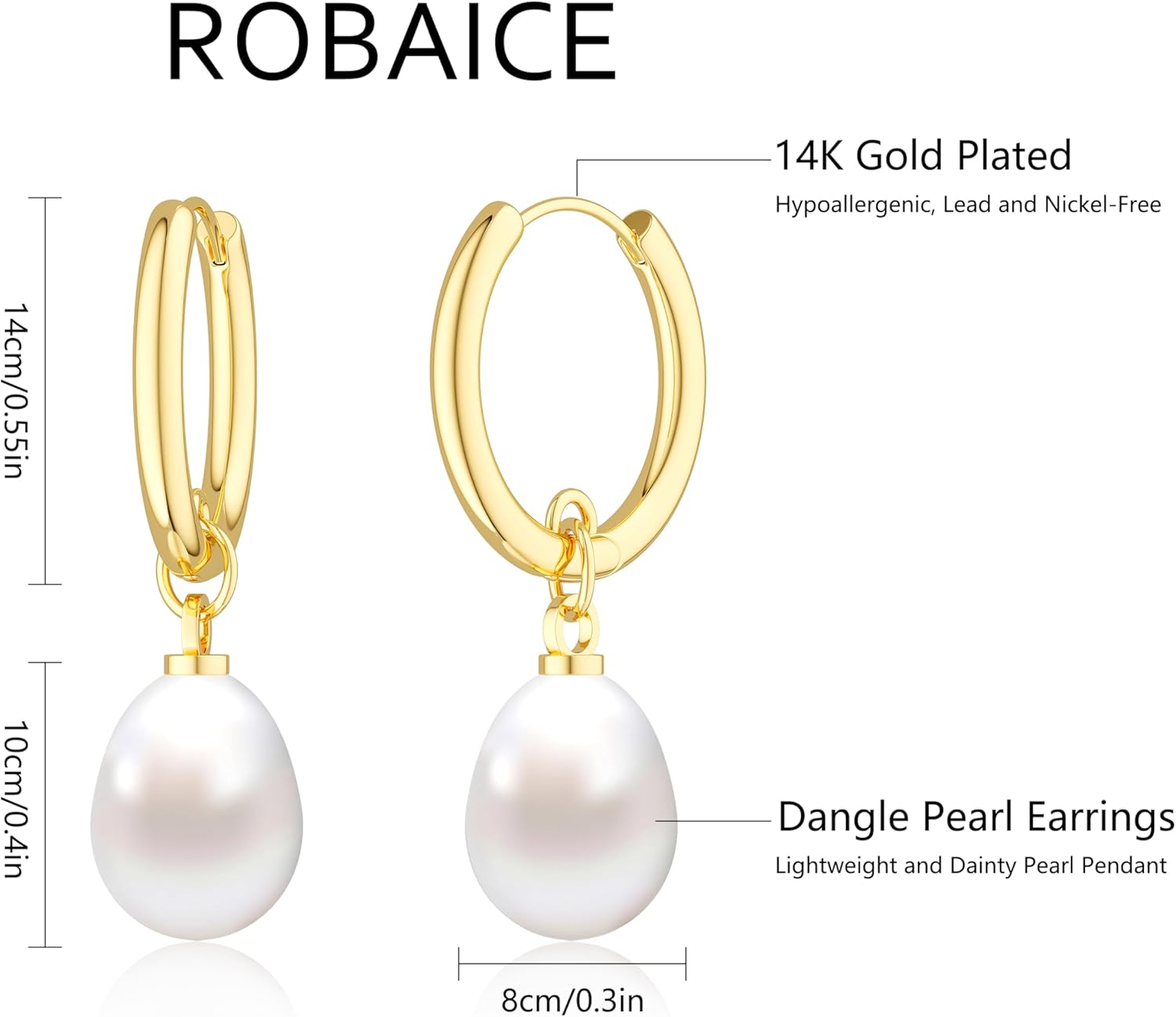 • Hypoallergenic Material: Elegant irregular/round cut pearl hoop earrings for women are crafted with 14k real gold plated, lead-free, nickel-free, and hypoallergenic. The small dangle pearl earrings makes it lightweight and non tarnish