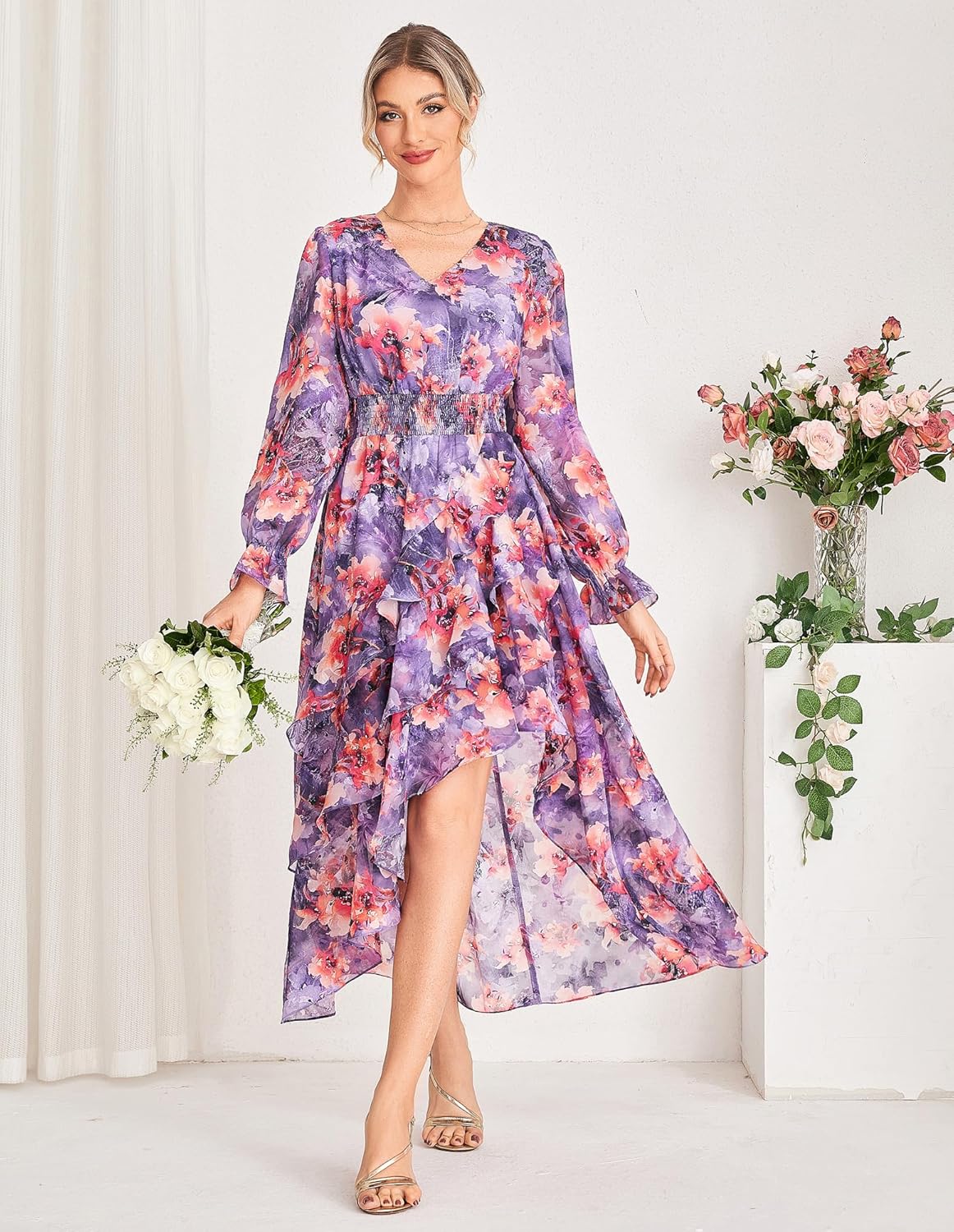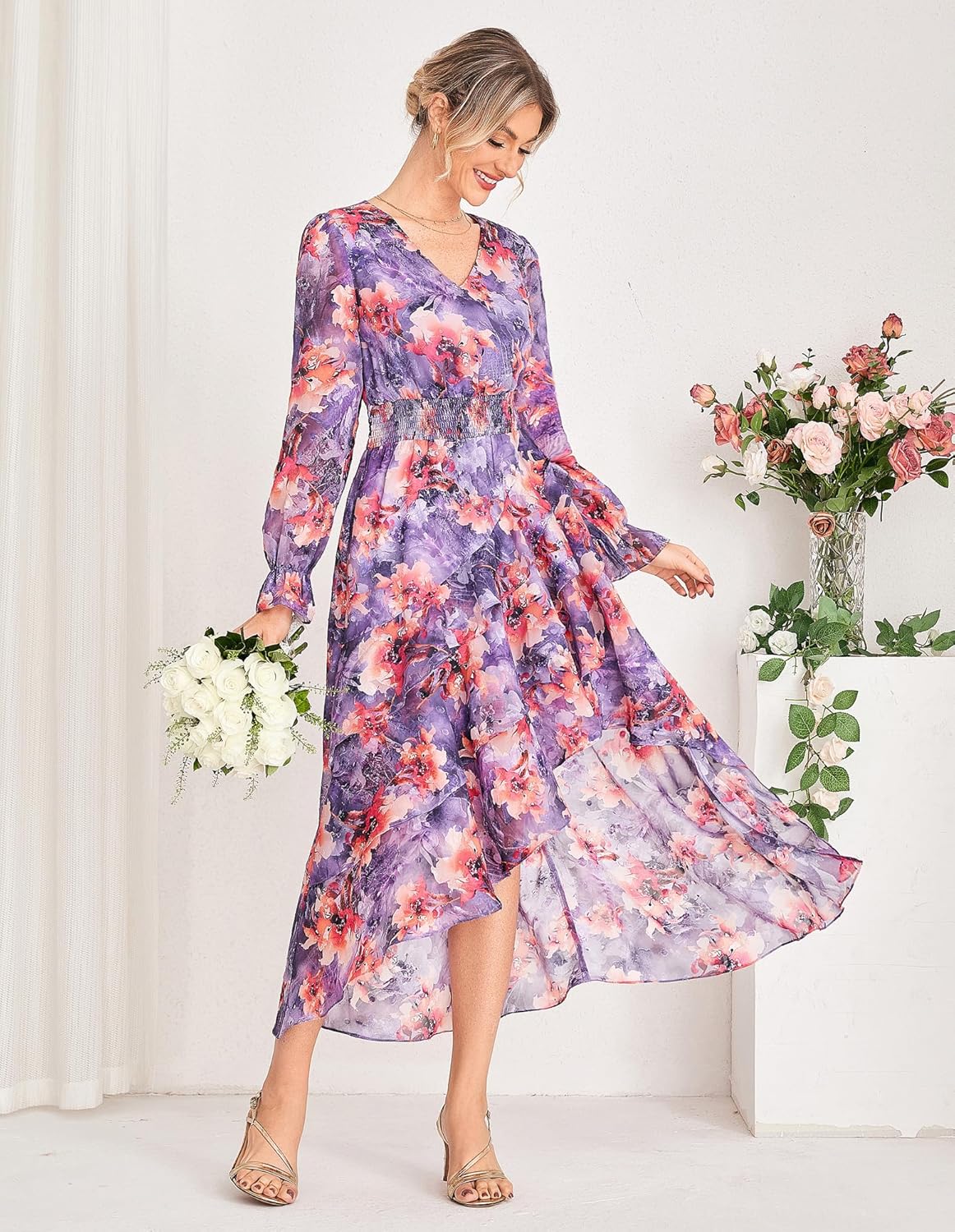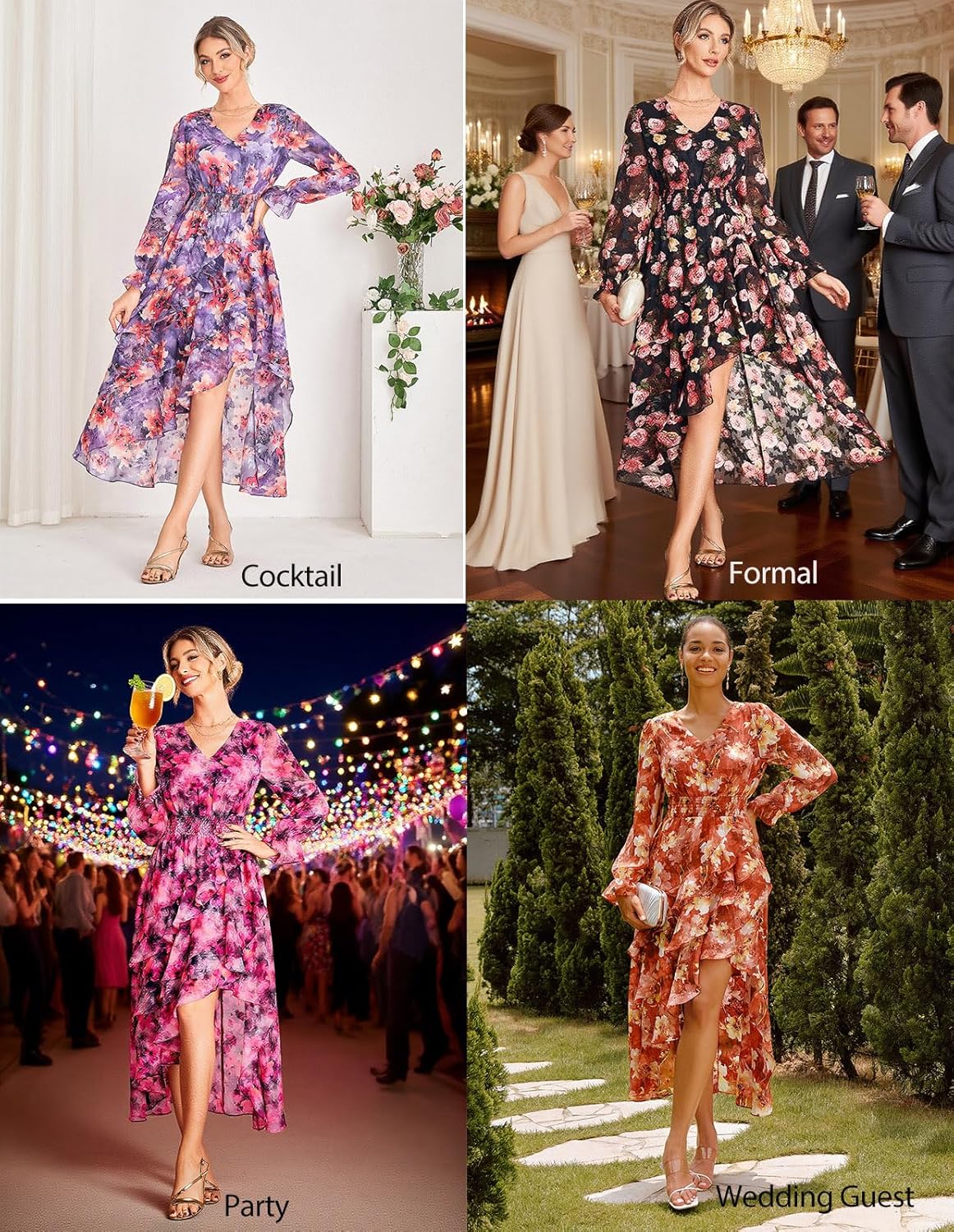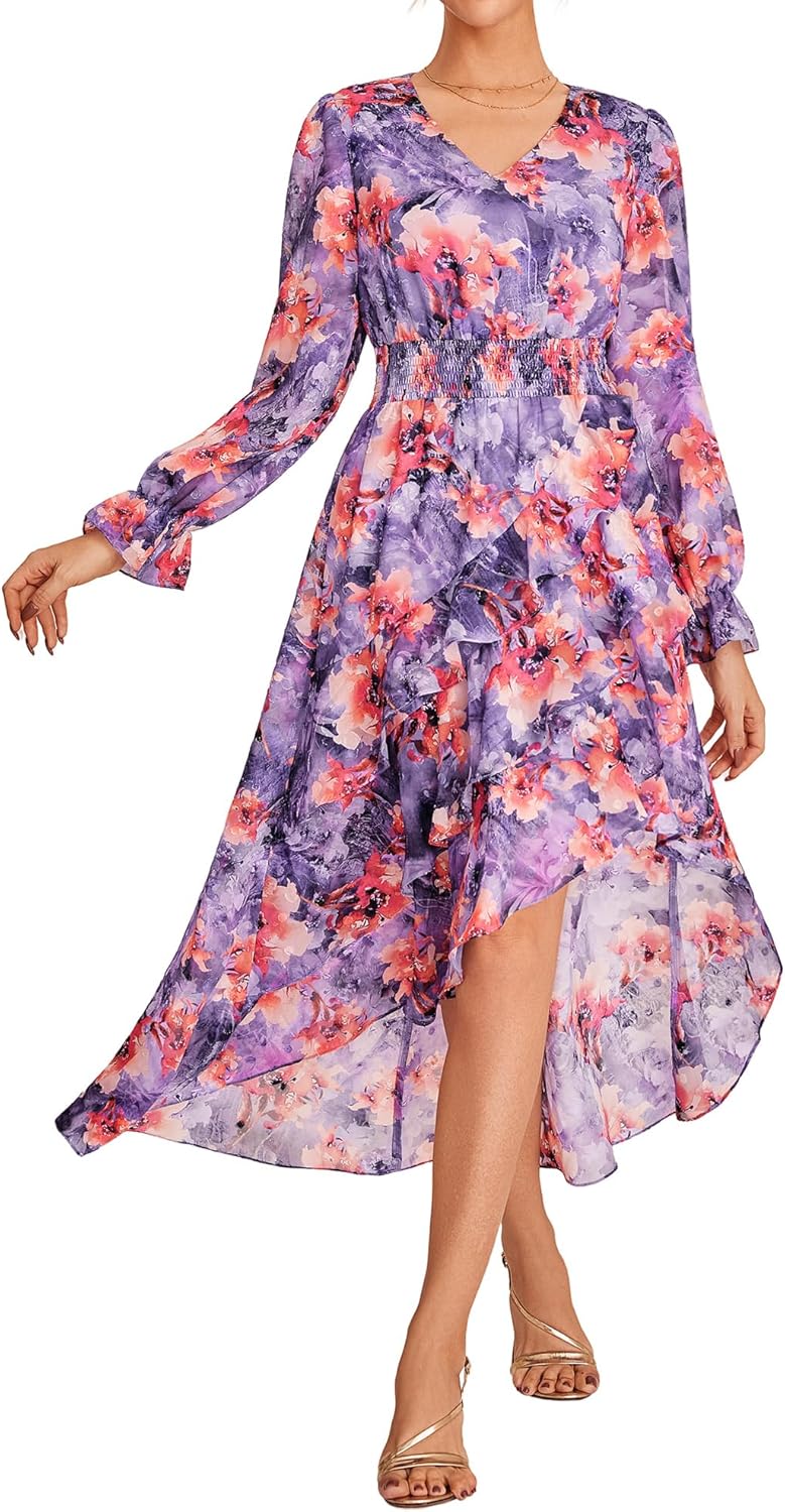 - Elegant Occasion Wear: Designed for wedding guest, cocktail, formal party, club, or outdoor gatherings, high-low maxi dress offers effortless sophistication with a flattering V-neck, smocked waist, and ankle-grazing flow for graceful movement
