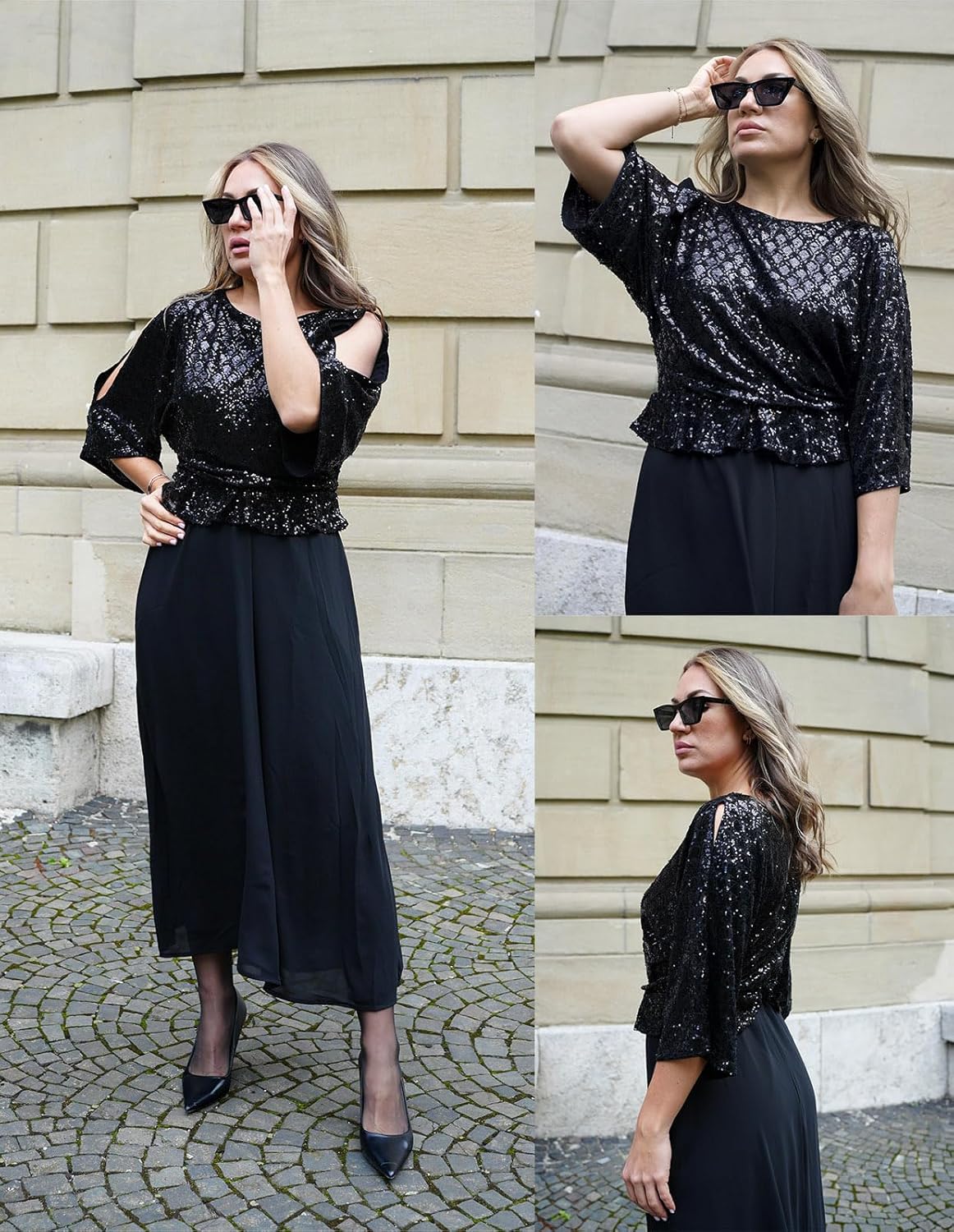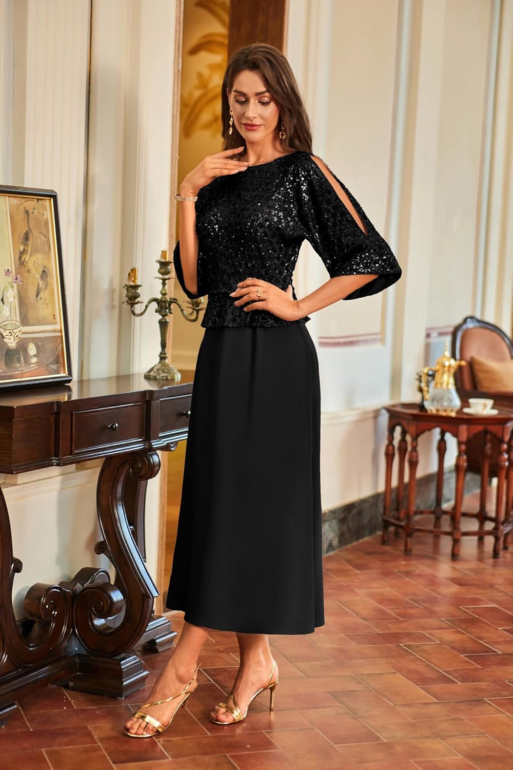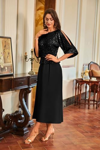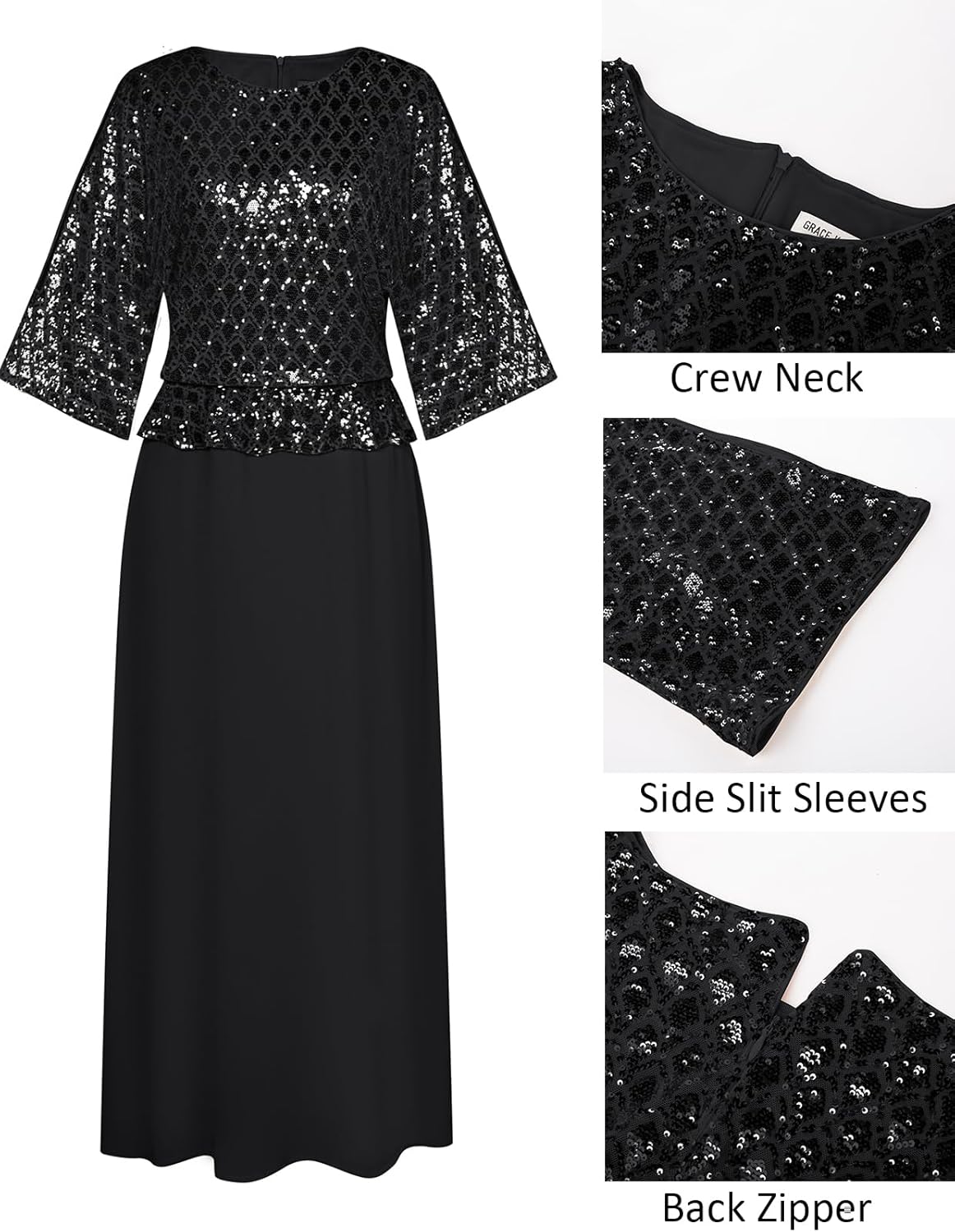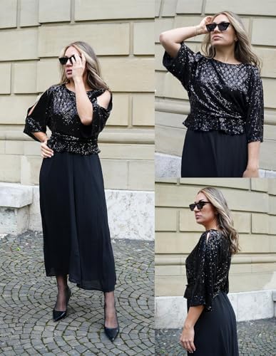 - Sparkling Detailing: Eye-catching sequins accent the contrast fabric design, catching the light beautifully while three-quarter slit sleeves and a classic crew neck lend a sophisticated, effortlessly chic look from day to night