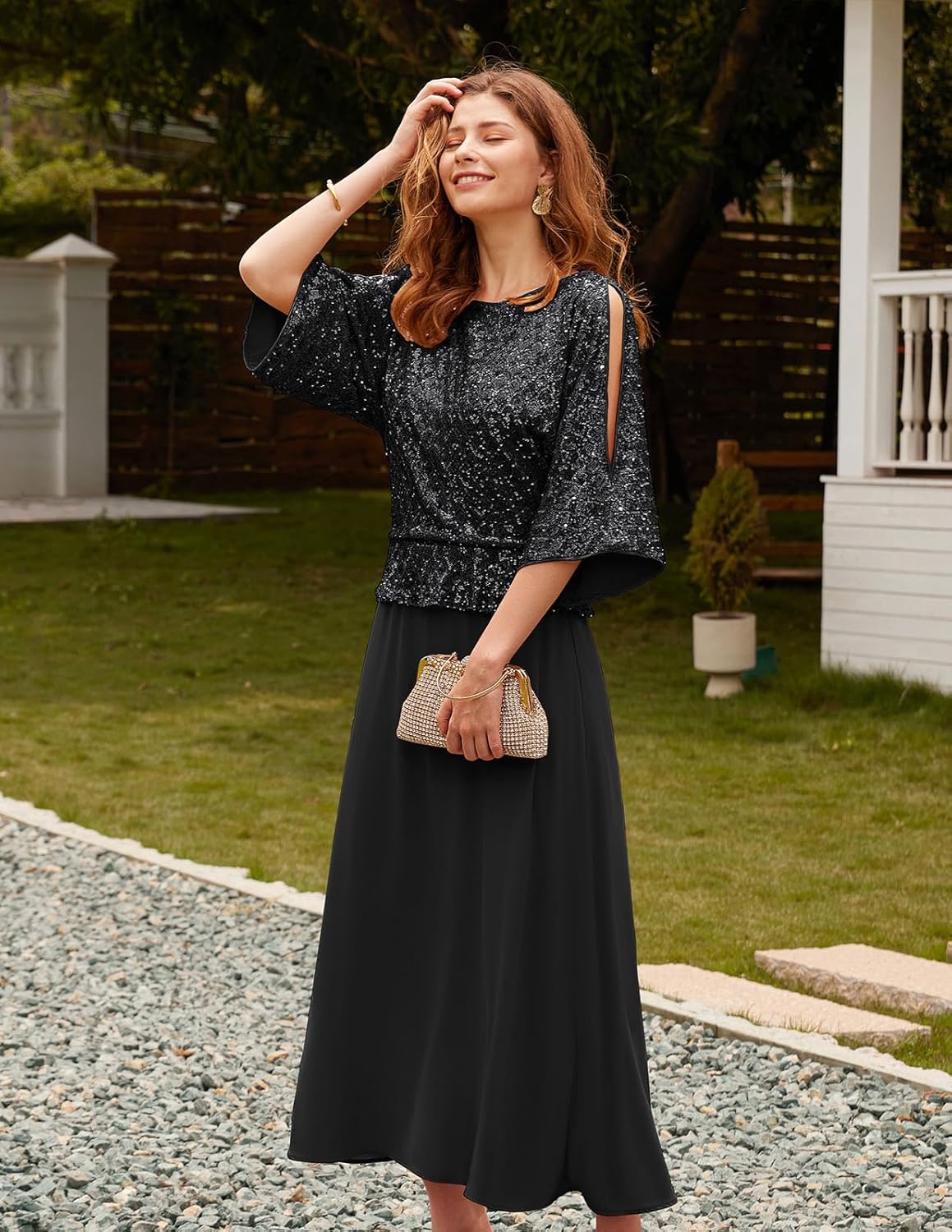 - Elegant Occasion Wear: Step into any celebration with confidence in this sequin patchwork dress, featuring a flattering A-line silhouette that hits at the ankle, creating a graceful flow perfect for weddings, evening events, and special gatherings