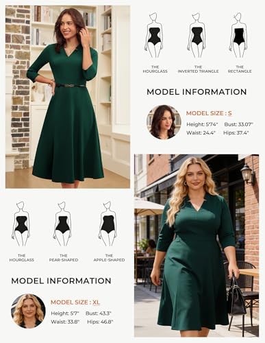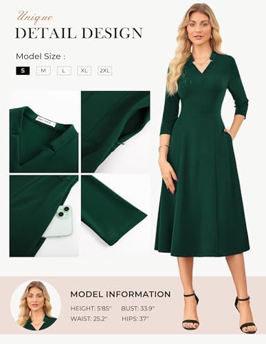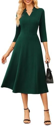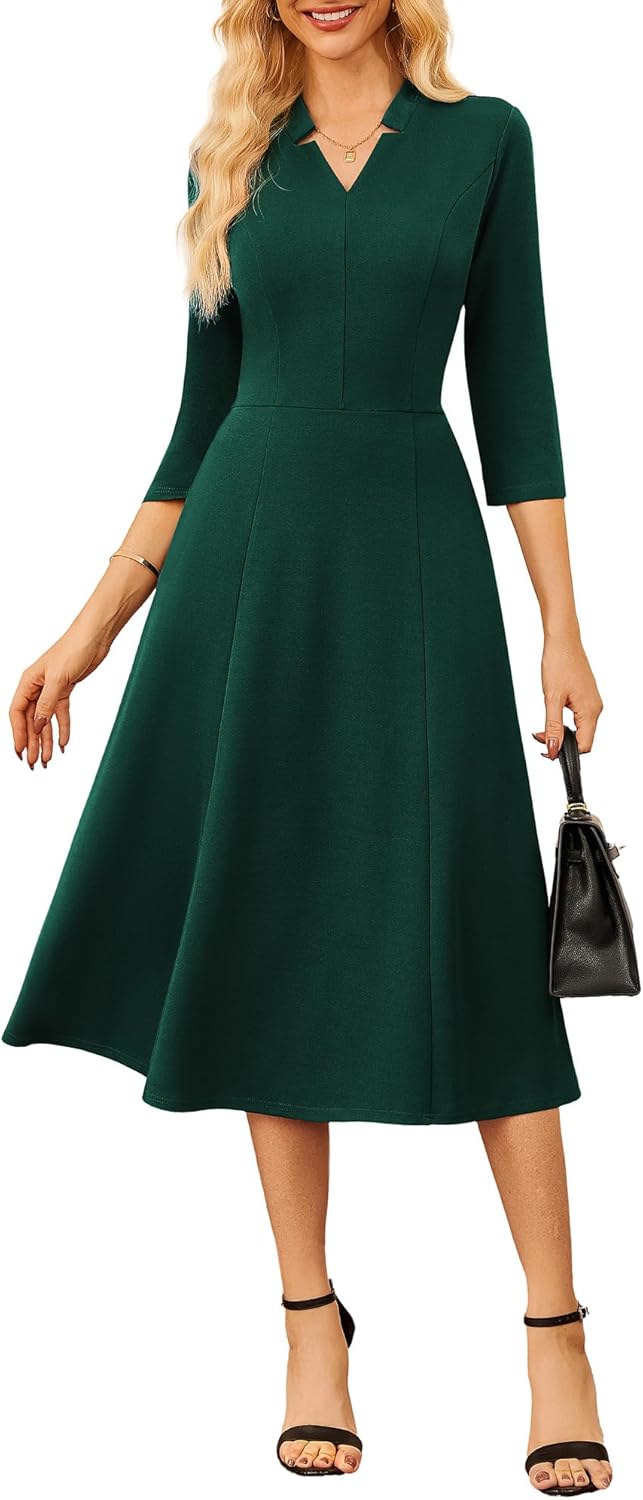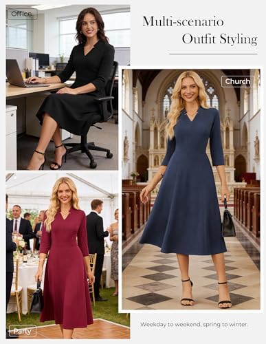 GRACE KARIN Work Dresses for Women 2025,Midi Business Dress,3/4 Sleeve Classy Fit and Flare Dress with Pocket