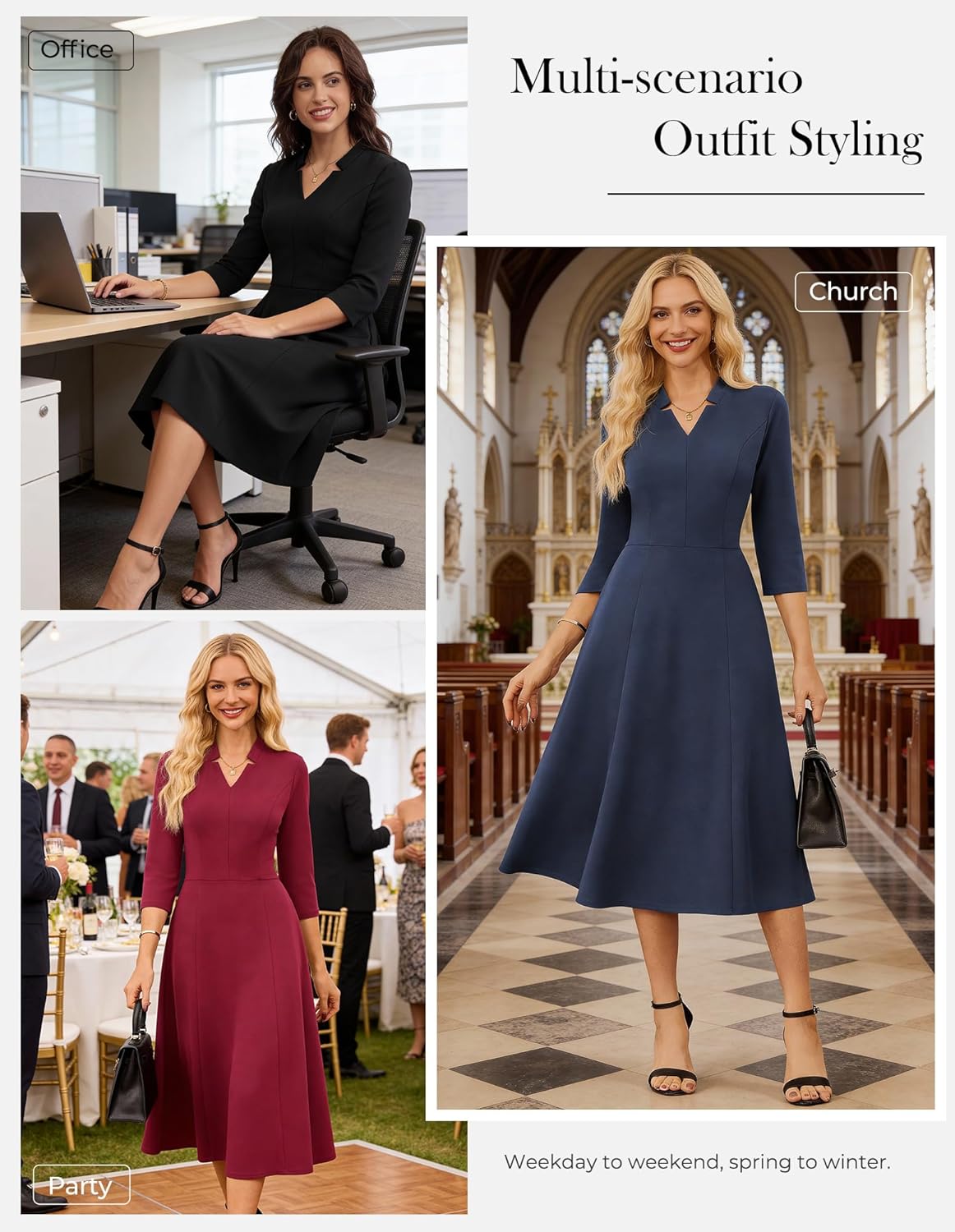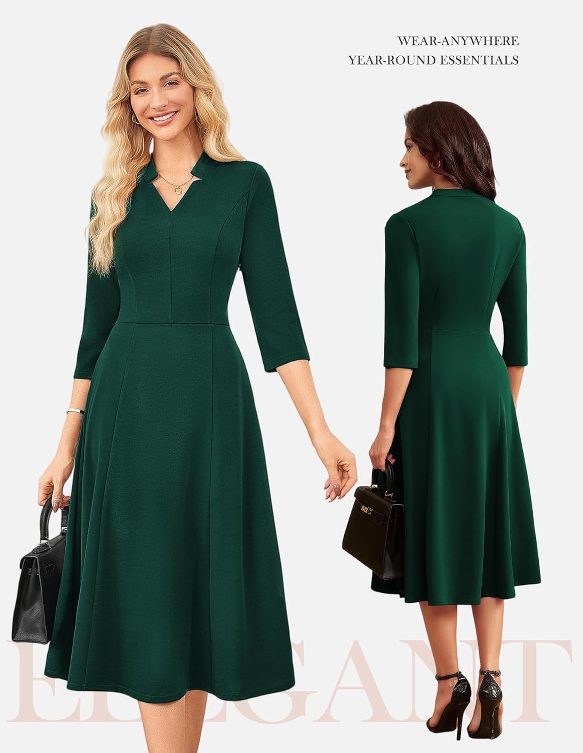• Outlining Elegant Curves: Classic V-neck + waist-hugging cut, V-neck design modifies the neck line, making you look thinner and taller; the waist is naturally narrowed, paired with an A-line skirt, cleverly hiding the flesh without being bloated
