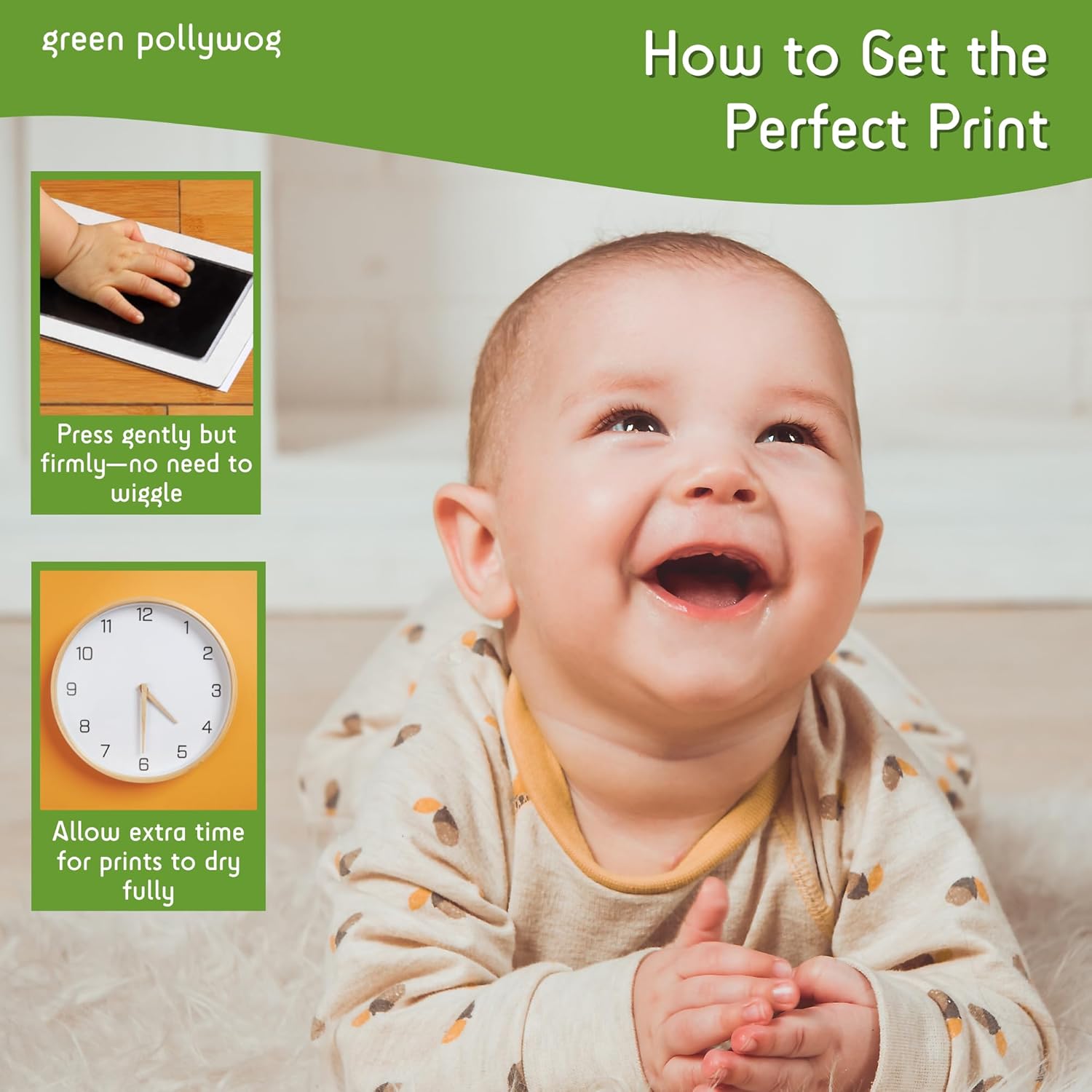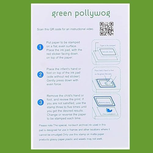 Green Pollywog Clean Touch Inkless Pad | Non-Toxic, Extra-Large | Baby Handprint and Footprint Kit | Safe Ink for Newborns | Paw Print Stamp for Dogs