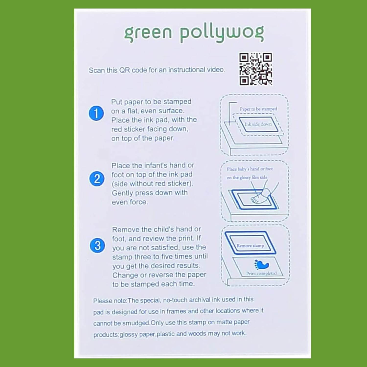 • IMPORTANT NOTE – Due to the advanced nature of the inkless ink pad, drying times may be longer compared to traditional ink. This ink stamp is designed for creating keepsakes and memorials intended to be stored behind glass, emphasizing that it’s not meant for regular handling. Carefully reading the instructions ensures the ink pad performs as intended, creating perfect prints for lasting memories.