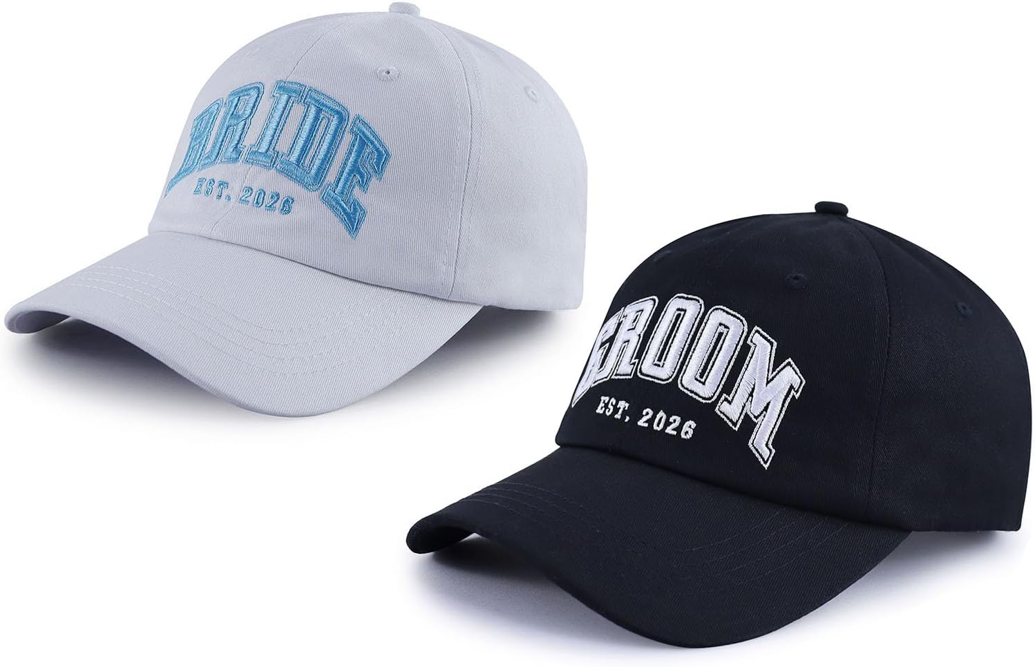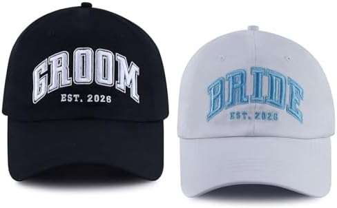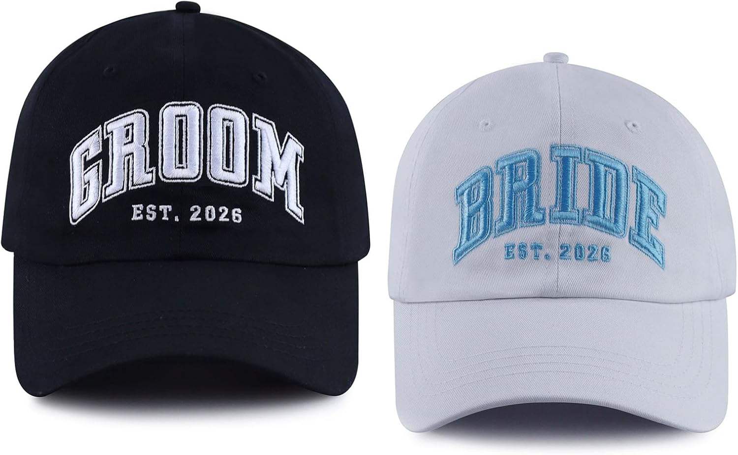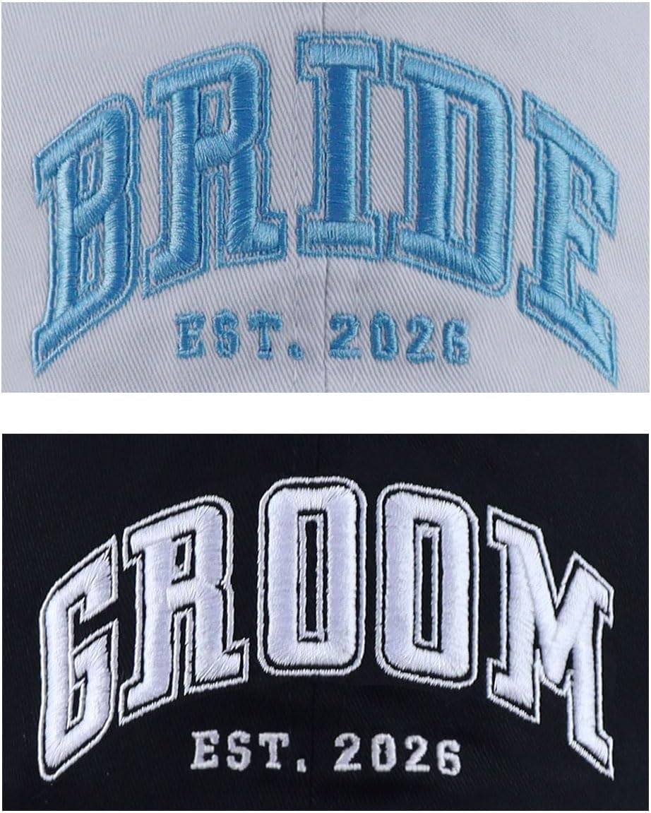 - Wedding Gifts Hat: Celebrate the Precious Relationship Between Bride and Groom with the Bride Groom 2026 Party Decorations Baseball Cap! Our Baseball Hat Is Made from High-Quality Pure Cotton and Embroidered with the “Groom Est 2026” And “Bride Est 2026” On the Front. Designed to Commemorate the Special Year of 2026, These Hats Are a Celebration of Love, Commitment, And Shared Joy. Engagement Gifts for Couples, His and Hers Gifts, Wedding Gifts for Couples 2026, Groom Bride to Be Gifts.