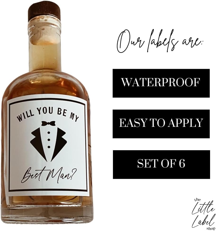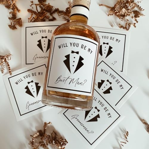 Groomsman Proposal Labels for Whiskey Bottles, Best Man Gift, groomsan Gift, Set of 6