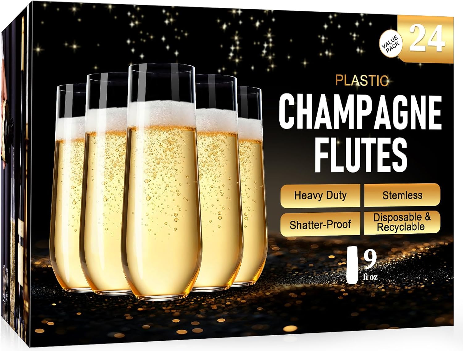 - 【Perfect Party Gift】Surprise your loved ones with this elegant set of crystal-clear champagne flutes—the ideal choice for birthdays, anniversaries, bridal showers, or “Mom-osa” brunches! Durable yet conveniently disposable, they bring a sparkling flourish to any celebration while making cleanup quick and effortless.