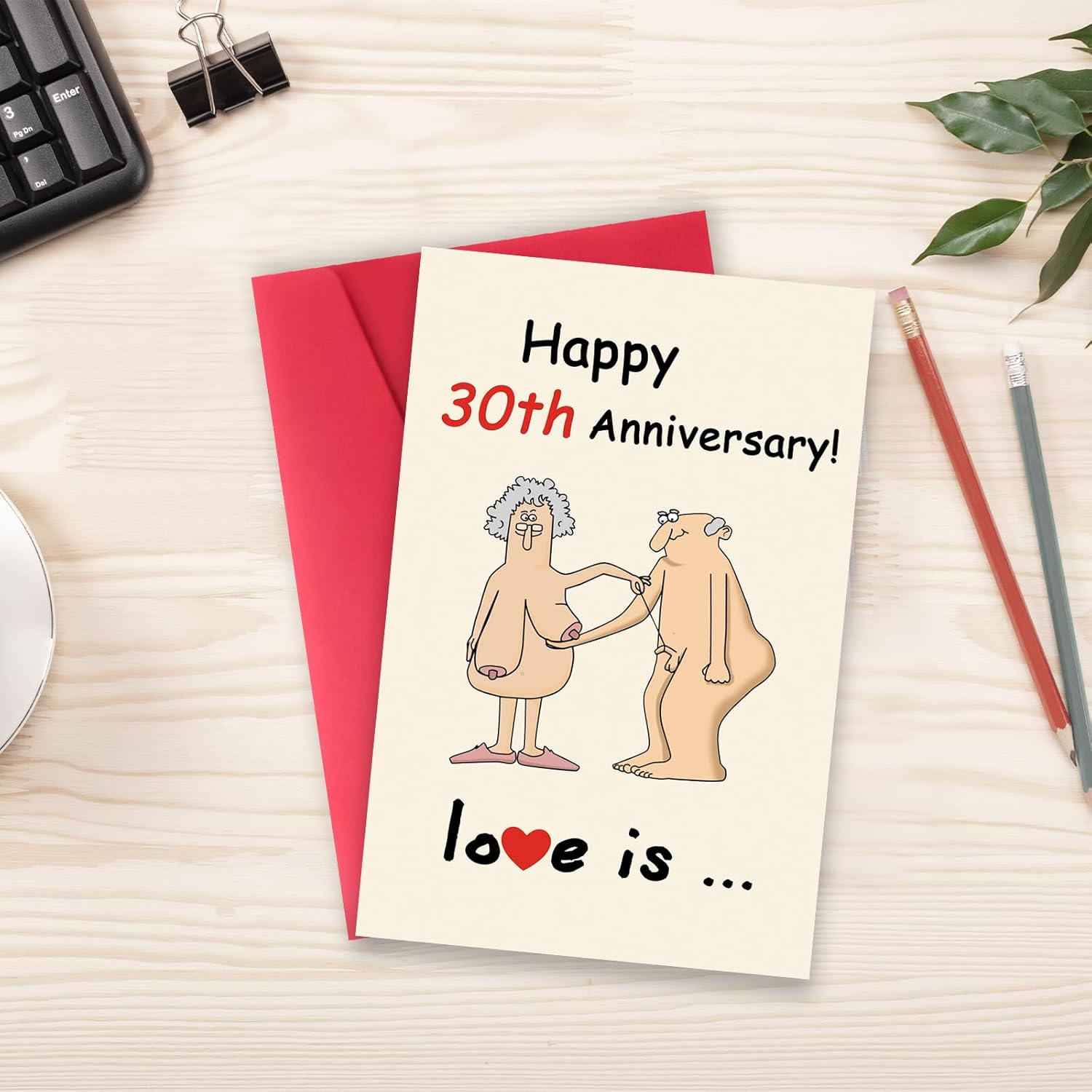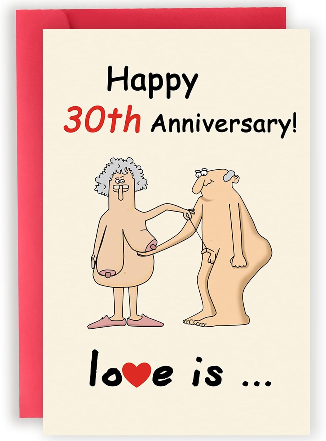 Celebrate 30 years of love and laughter with our vibrant, 8×5.3 inch Funny 30th Wedding Anniversary Card. This double-sided, cartoon-style card features a humorous message inside, perfect for couples looking to add a touch of fun to their special day. Packaged in a red envelope and protective bag, it’s ready to be treasured and shared. Write your personal wishes and thoughts inside, making it a unique keepsake for your loved ones.