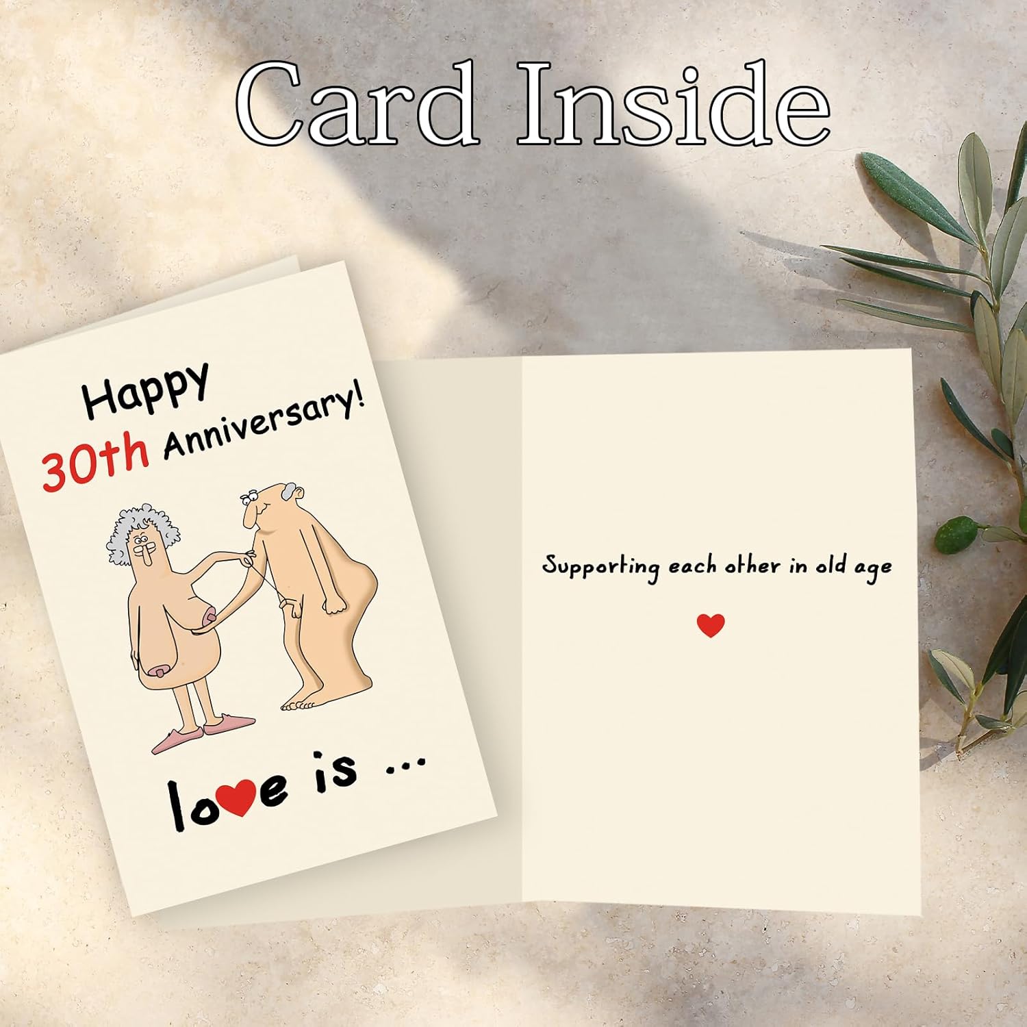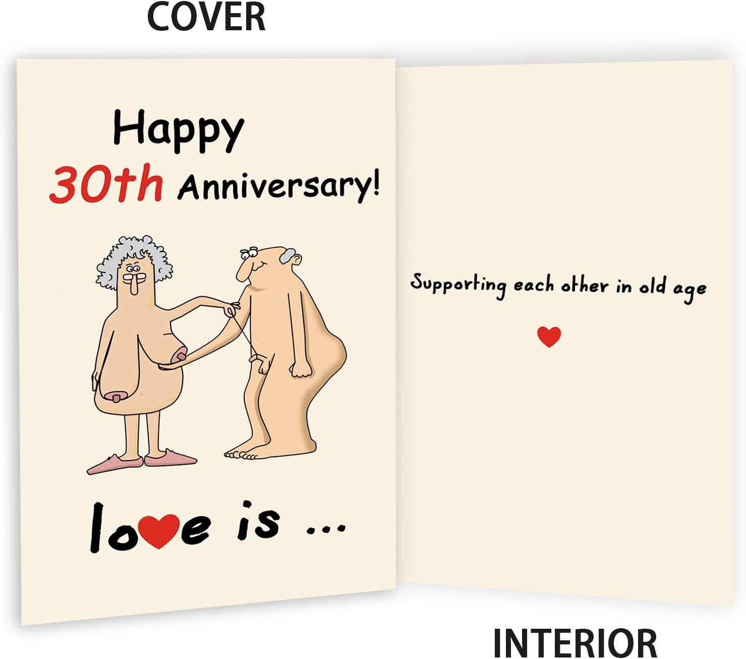 - Double-sided Design—Funny 30 anniversary cards with the inside page saying “Supporting each other in old age” to give them a happy anniversary in a fun and unique way.