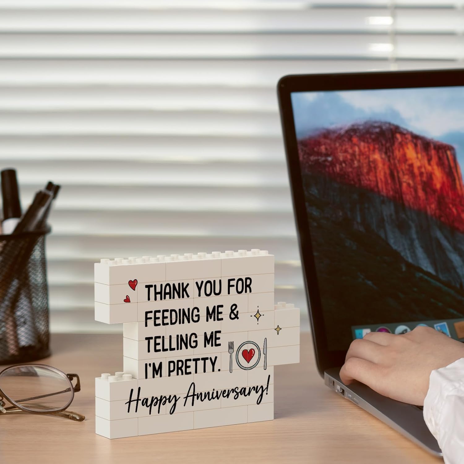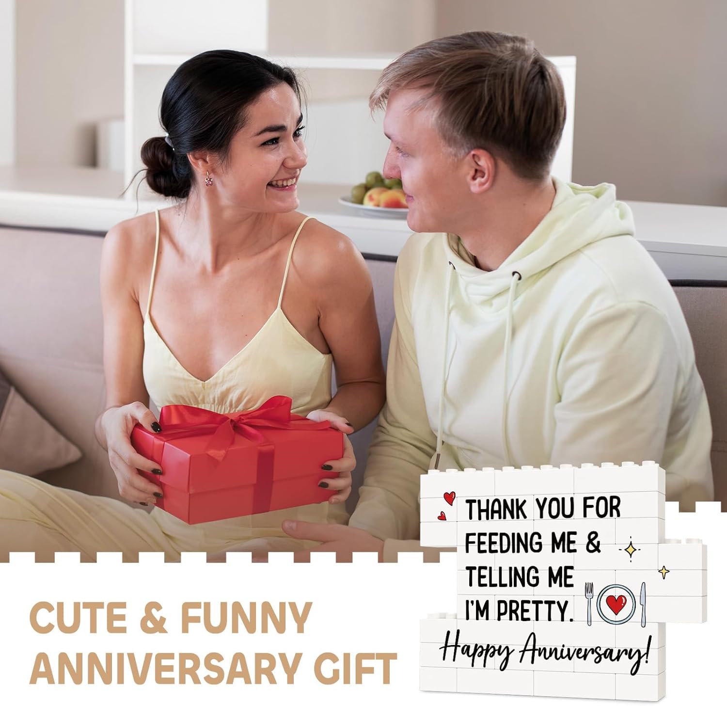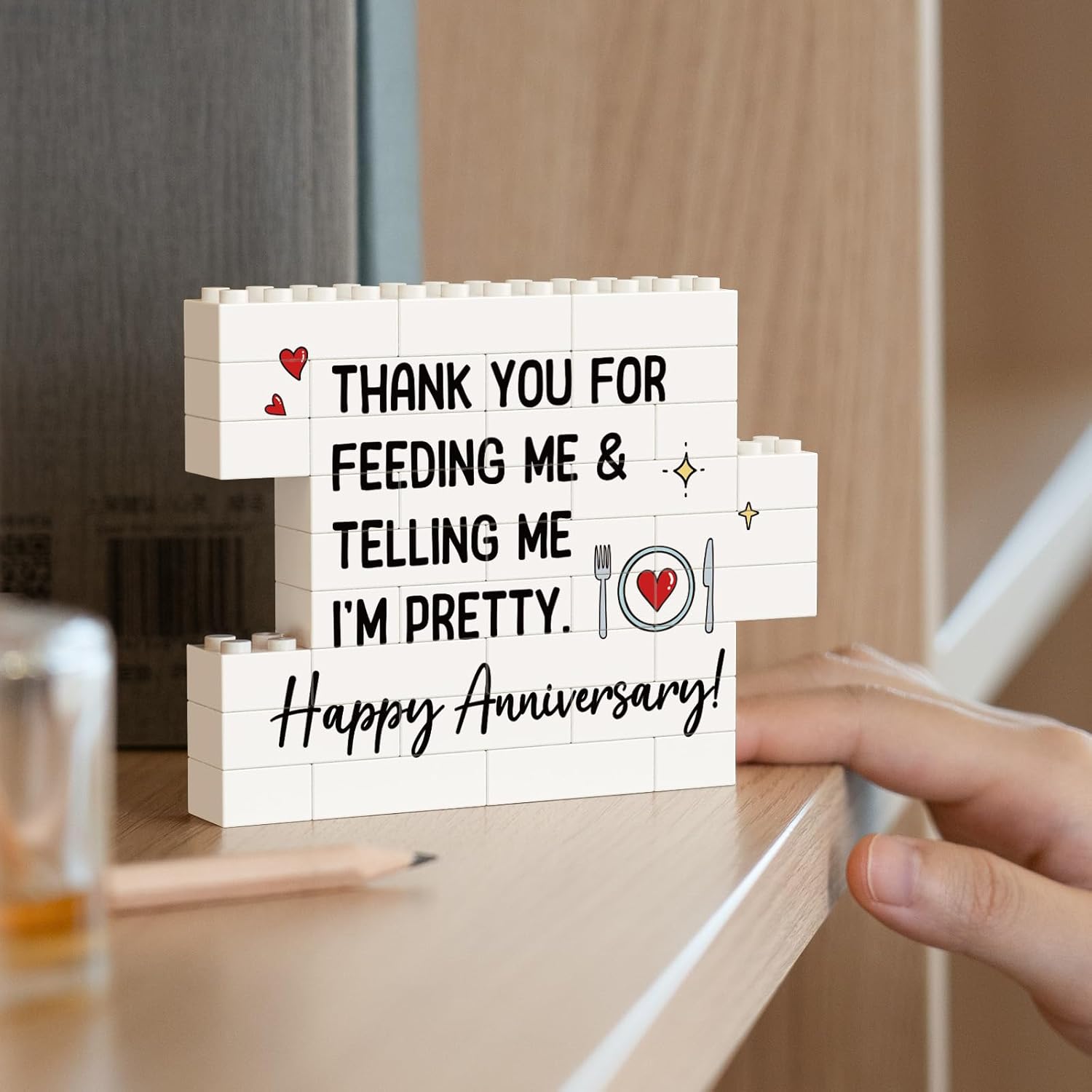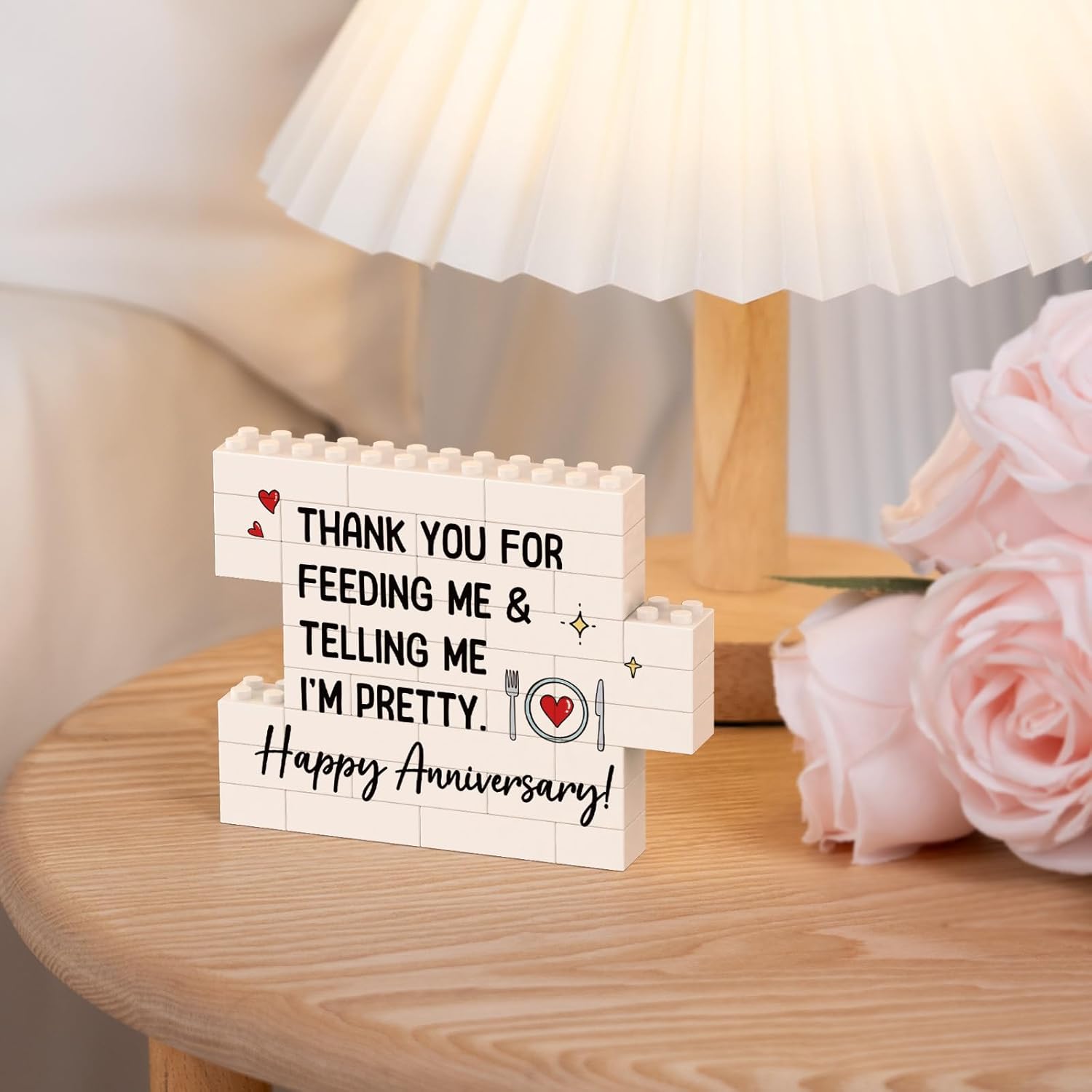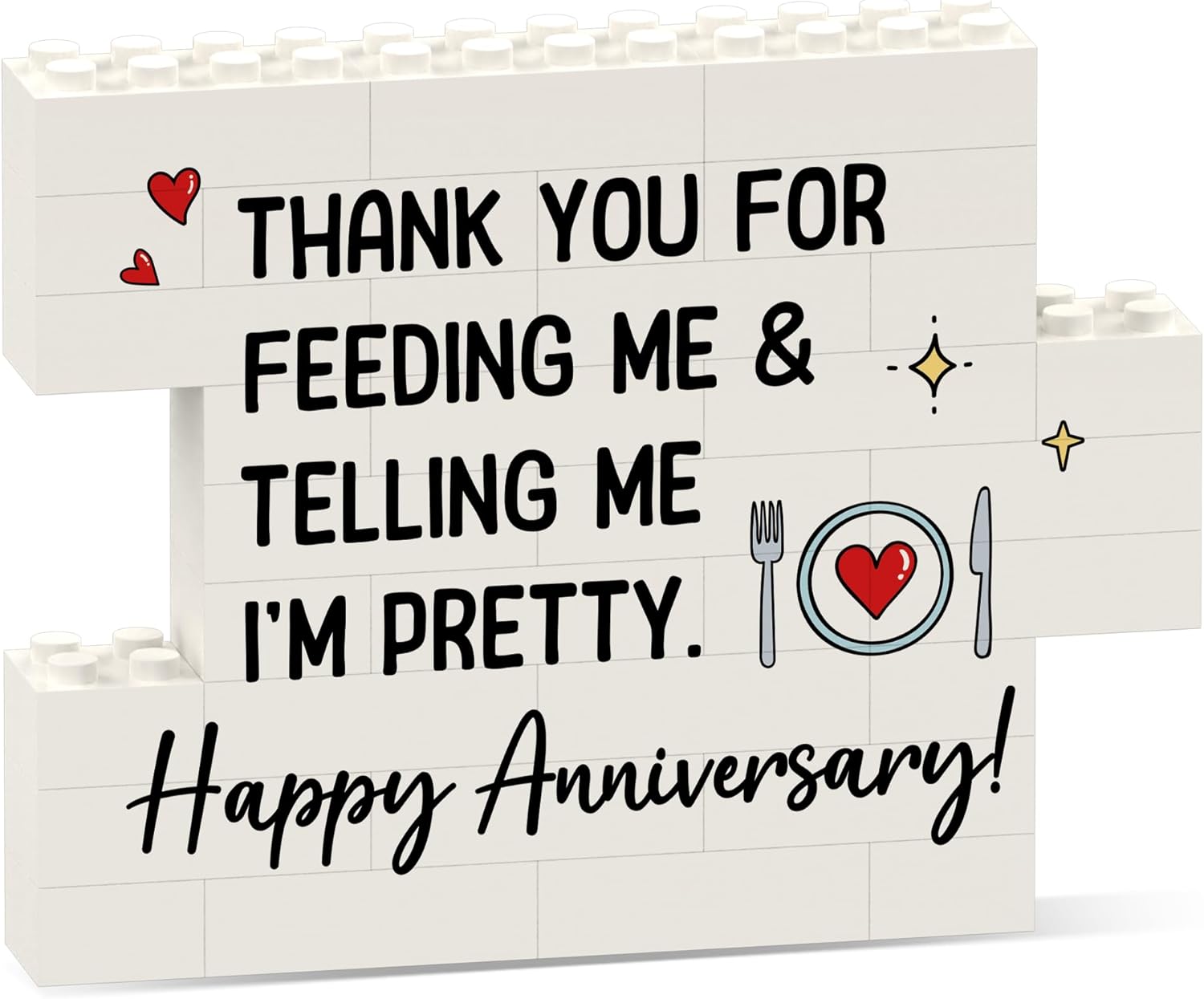 - 【Best Anniversary Gift】Featuring the playful message “Thank you for feeding me & telling me I’m pretty. Happy Anniversary!”, this building block puzzle sign is a heartfelt anniversary gift for couples — perfect for 1 year anniversary gifts for boyfriend, 25th wedding anniversary gifts, 50th wedding anniversary gifts, or any special milestone you celebrate together. A sweet and humorous way to express love and appreciation