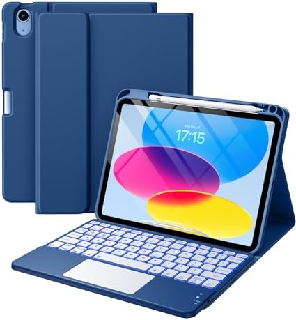 Harvopu Compatible for iPad 11th 10th Generation Case with Keyboard, Folio Cover with Pencil Holder, Multi-Touch Trackpad, 7 Color Backlit, Detachable Keyboard for iPad (A16) 11th/10th Gen (Navy Blue)