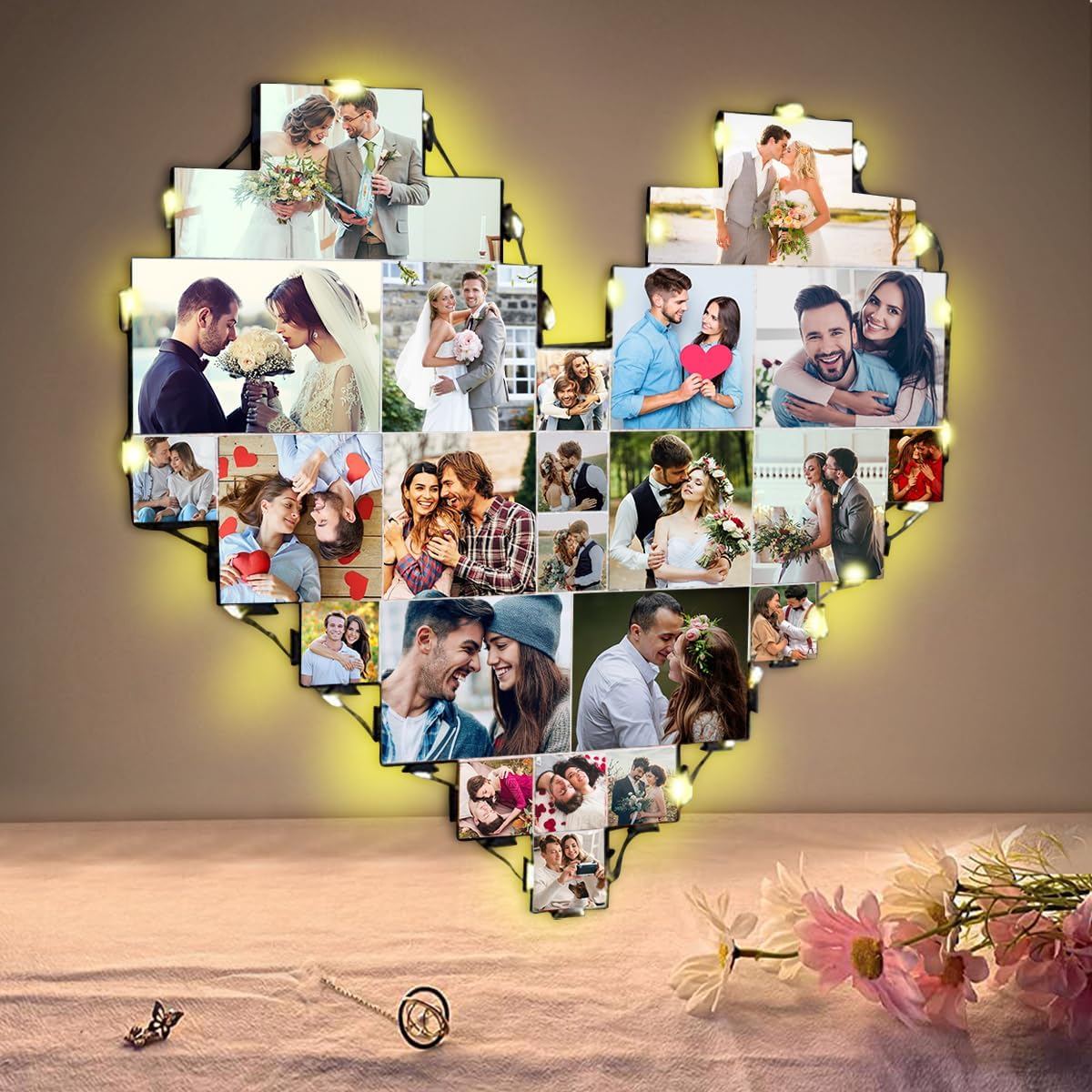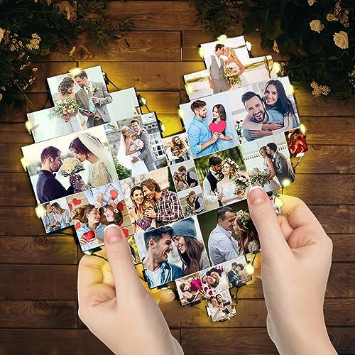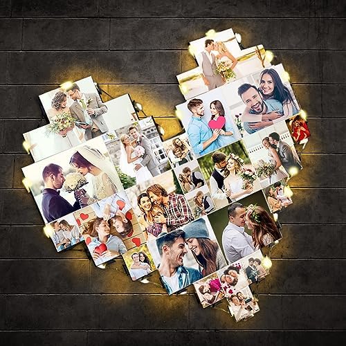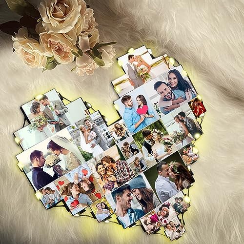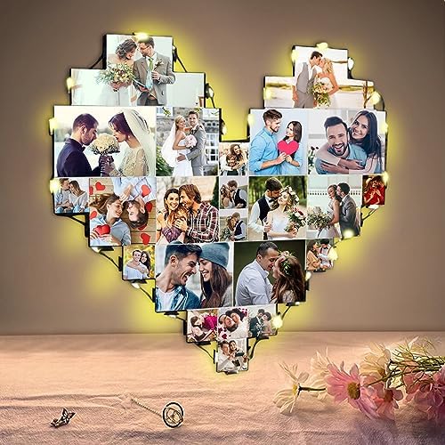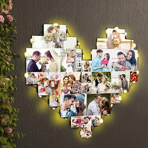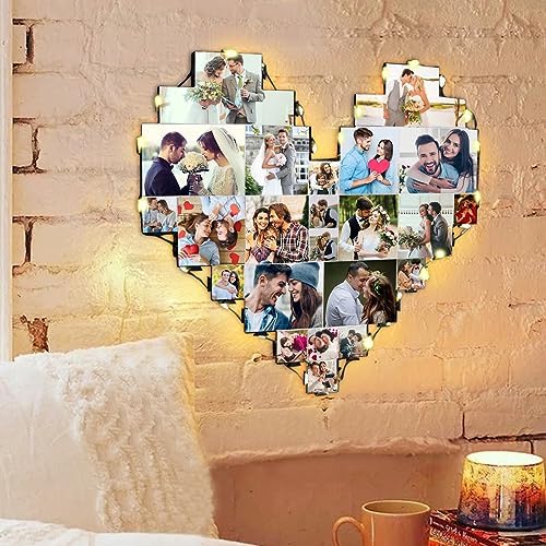 Heart Picture Frames Collage with custom 15 photo Wall Hanging Picture Frame with Led Light, Multi Photo Frame Collage for Family Pictures Wall Decor Gift For Mom Dad Father Lover Wife (15 photo)