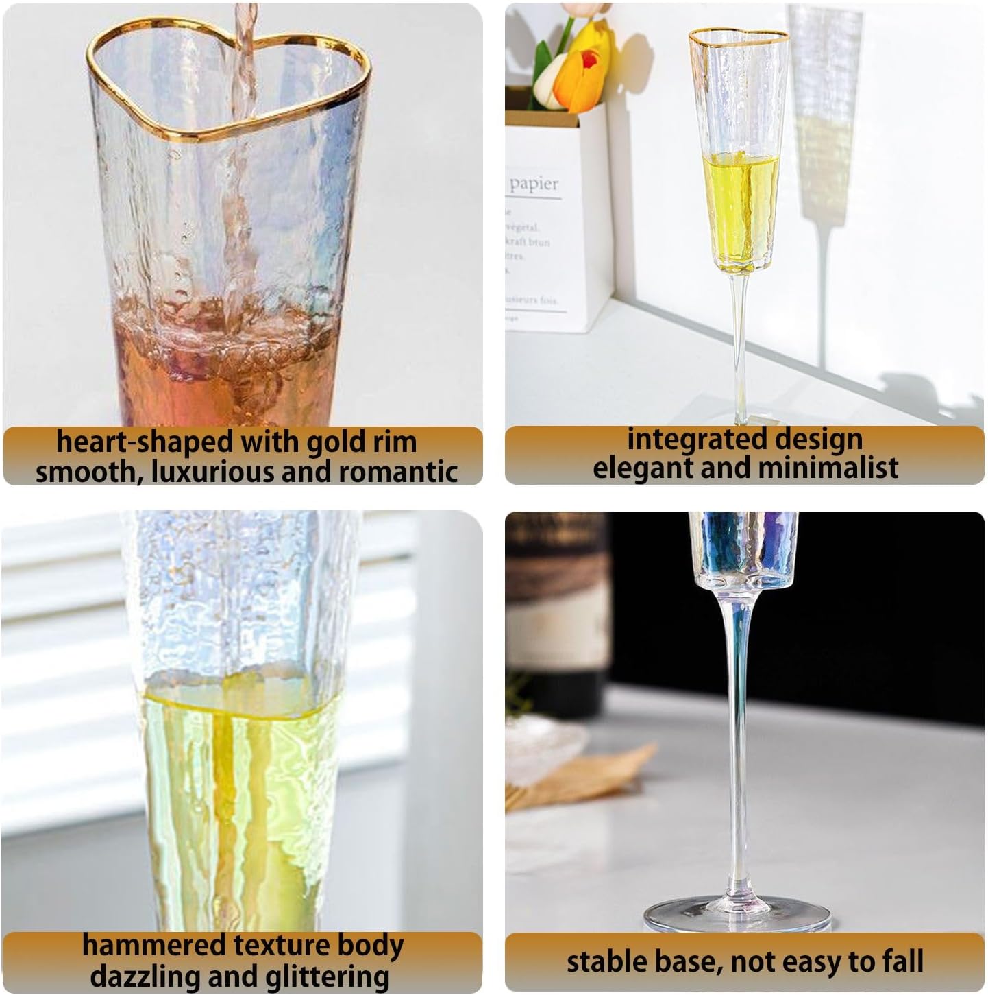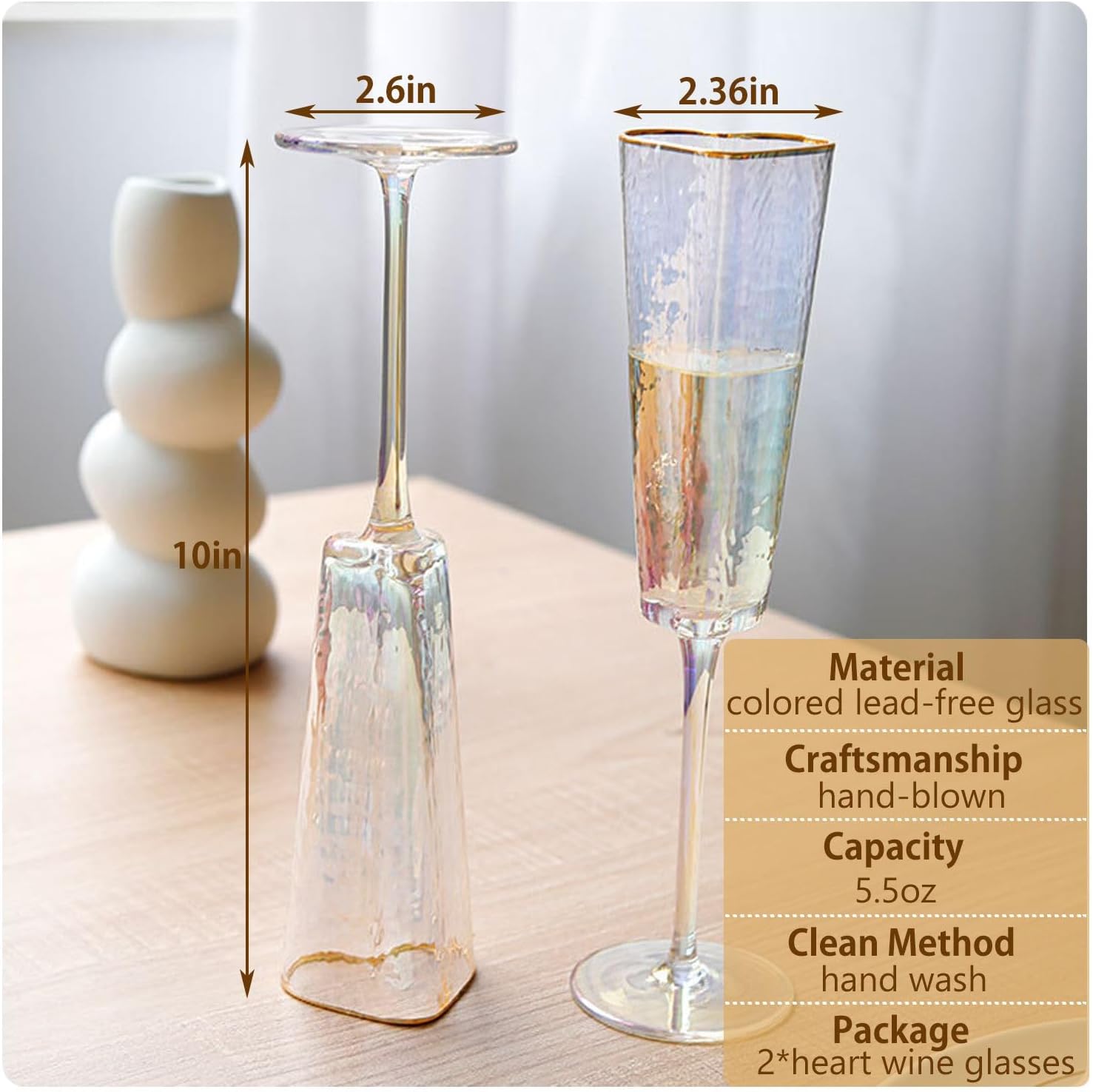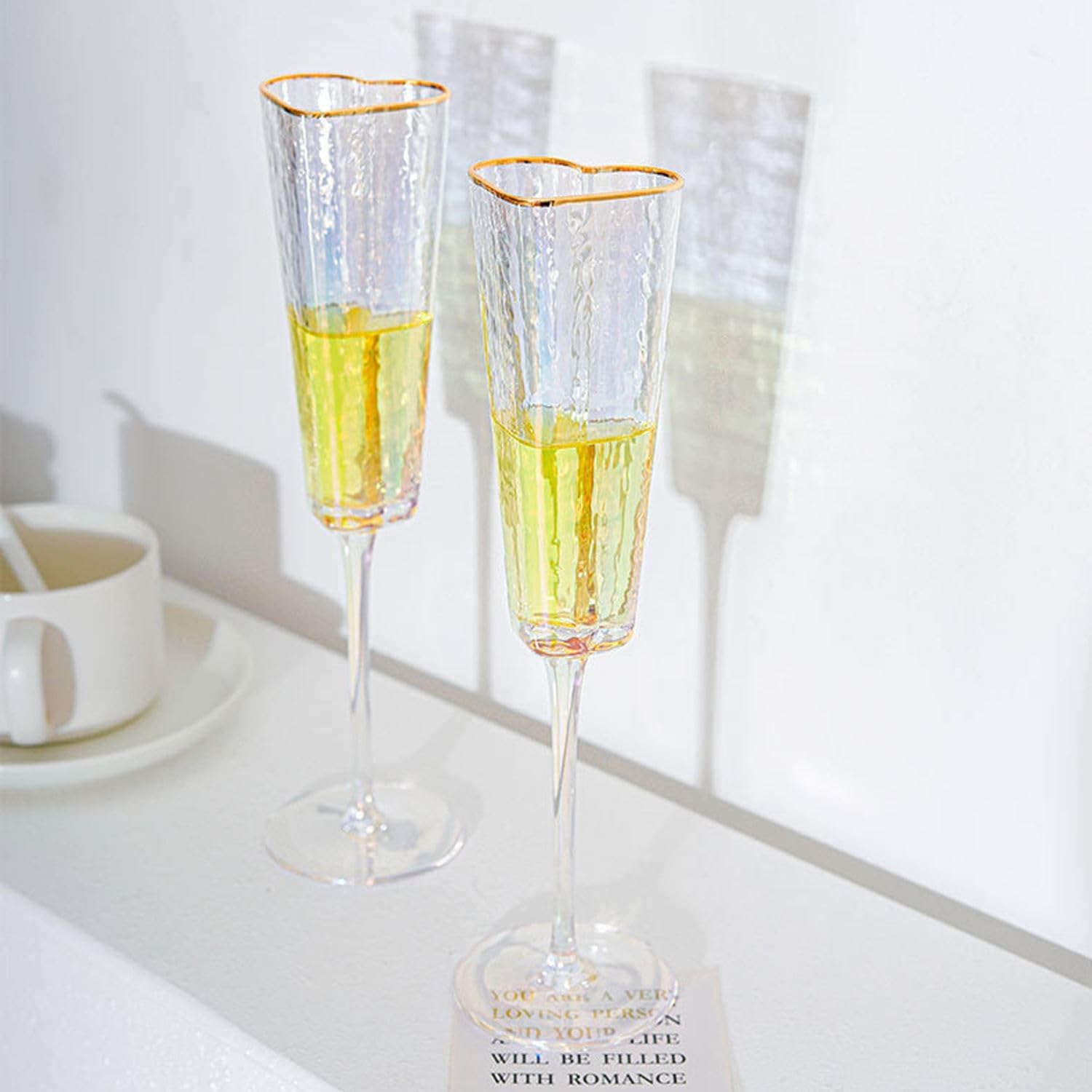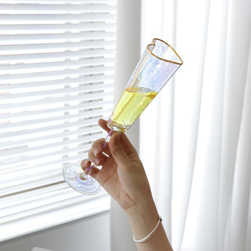 Heart Shaped Champagne Flutes Set of 2 Unique Wedding Toasting Glasses for Bride and Groom Golden Rimmed Crystal Champagne Glass Gift for Birthday Christmas Couples Anniversary Colorful, Small