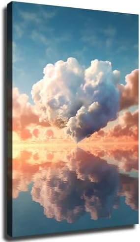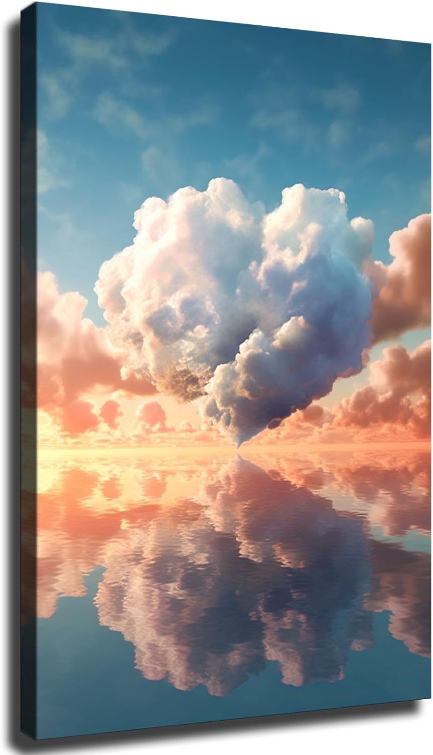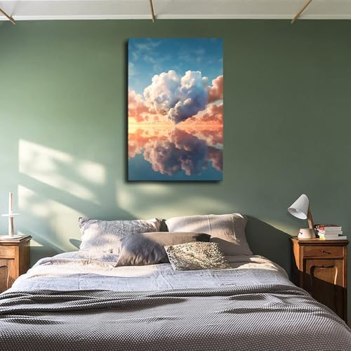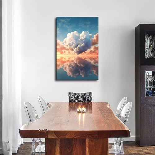 Heart Shaped Cloud Landscape Aesthetic Canvas Poster Holiday Gift HD Wall Art Paintings Canvas Wall Modern Home Aesthetic Decor Living bad Room Decor art (2030inch-Unframed)