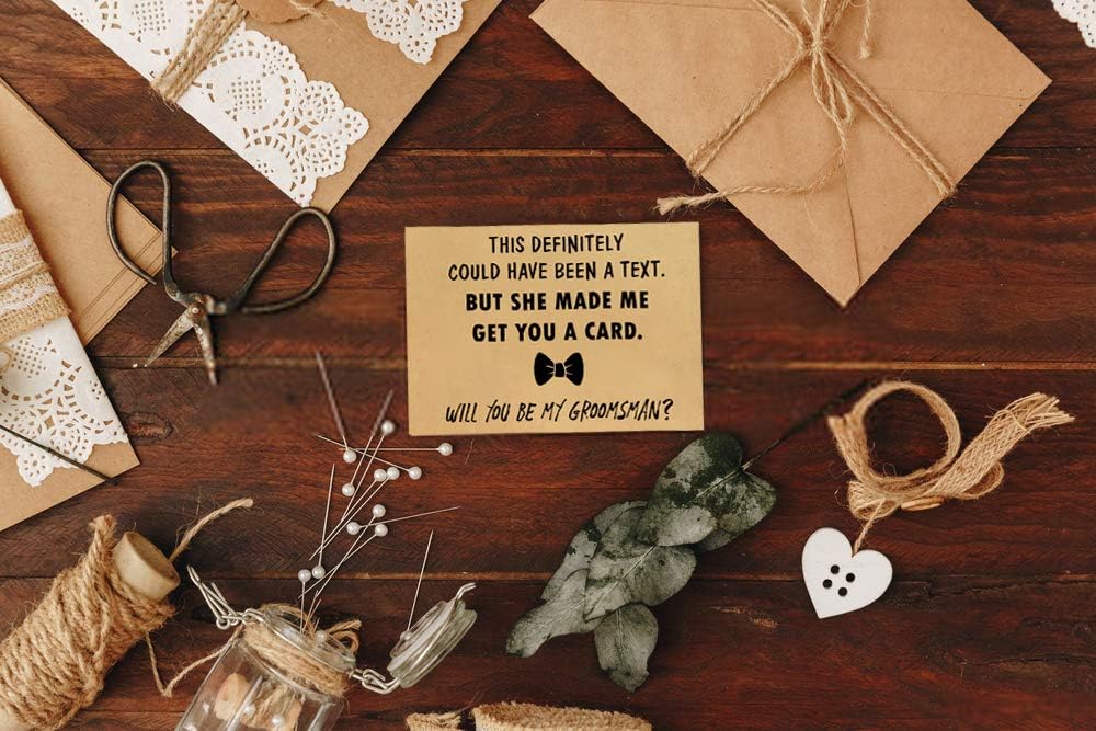 - ★ FUN & CLASSY: This Funny Groomsmen Card will speak of your fun yet straightforward personality. Propose to your favorite buddies in a unique and fun way.