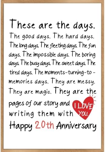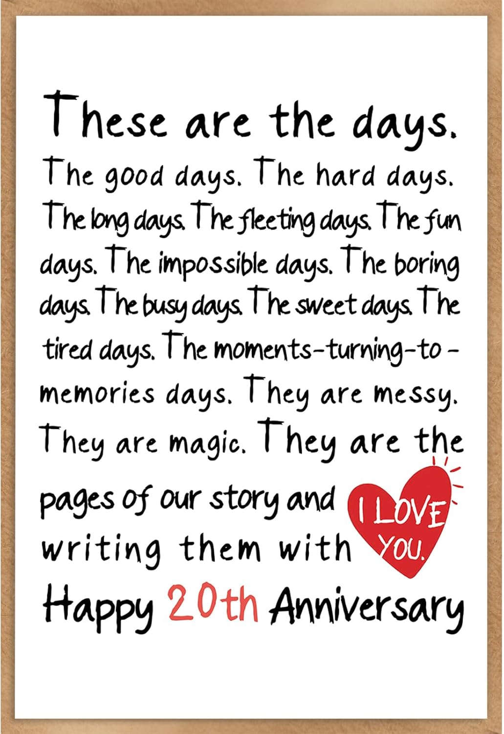 - This 20th anniversary card is crafted with heartfelt emotion at its core — using simple words and gentle warmth to capture the real, shining moments of love. It celebrates life, not just love. It embraces imperfection and treasures every piece of the everyday — the laughter, the weary days, the quiet moments, and the warmth of being together. These are what make love truly beautiful.