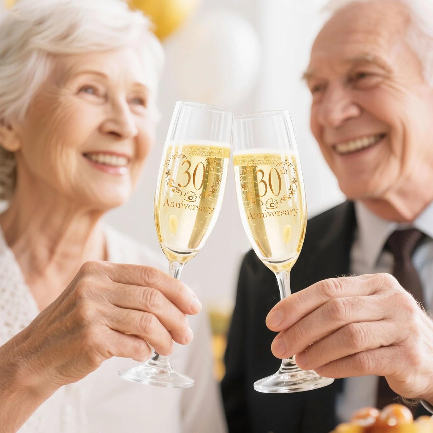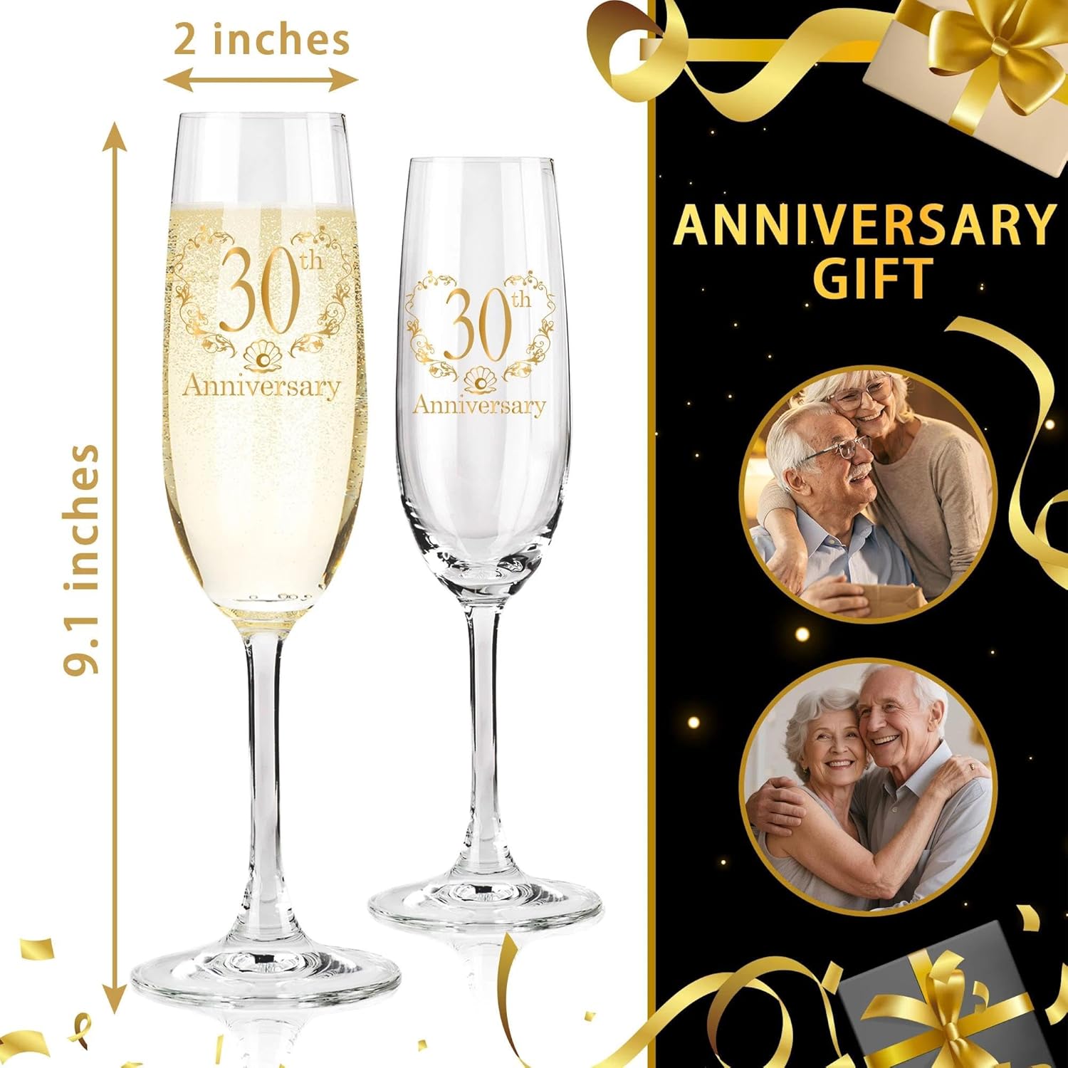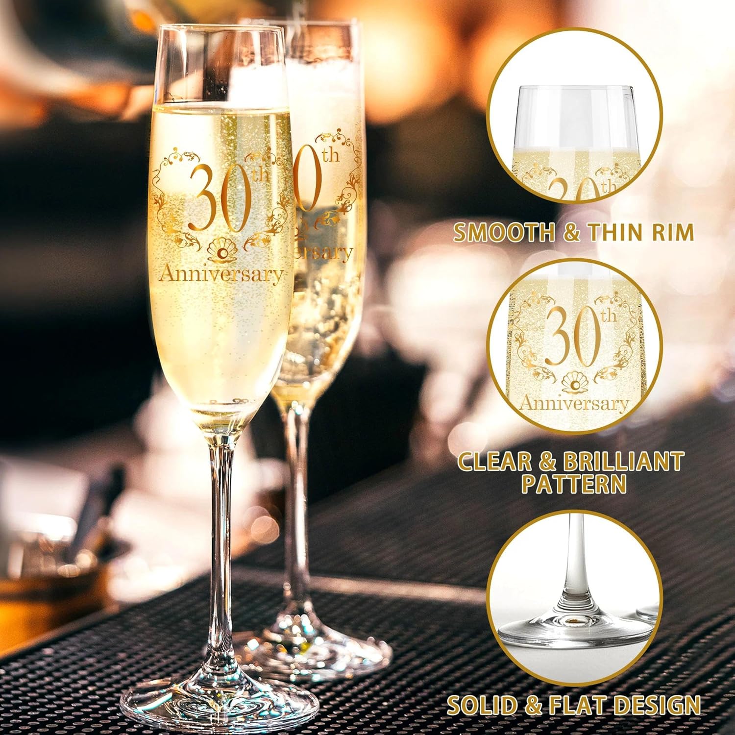 - 30th Anniversary Gifts: Each of our champagne glasses is made of hand blown glass, symbolizing that each champagne glass is unique, just like your eternal love. The 30th anniversary champagne flutes glass is made of polished transparent glass, as clear and precious as the love between you.