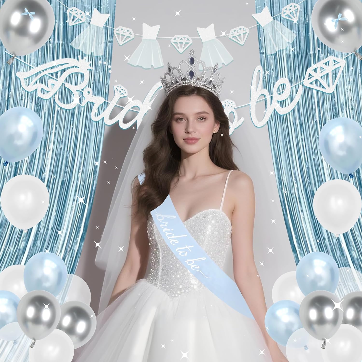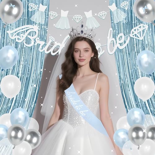 - 【Hosting BRIDE Party】: White veil, light blue balloons, the entire air is filled with a dreamy and happy atmosphere. The light blue bridal shower room is decorated to add a beautiful atmosphere to your wedding party, elegant and beautiful, with a free and carefree vibe. The blue Bride party decorations can be used as background decorations, and take beautiful and comfortable photos with him/her, which is a great memory.