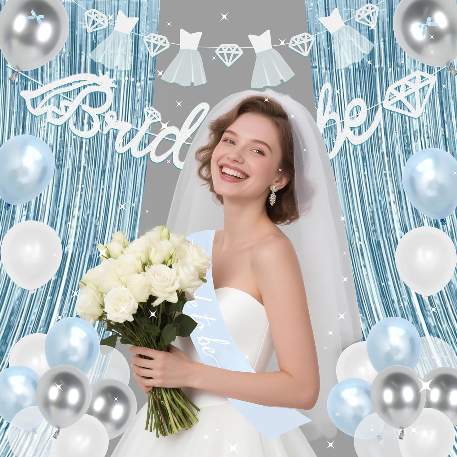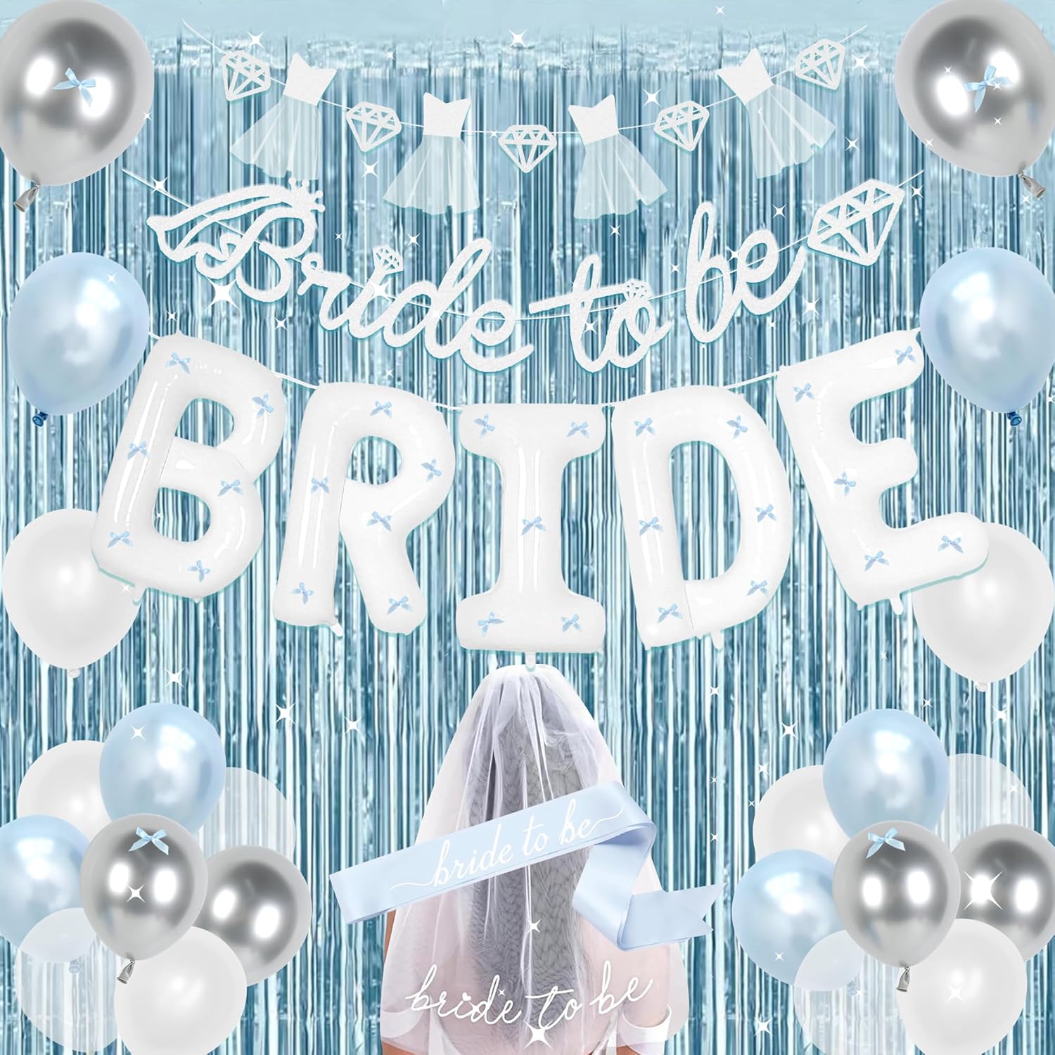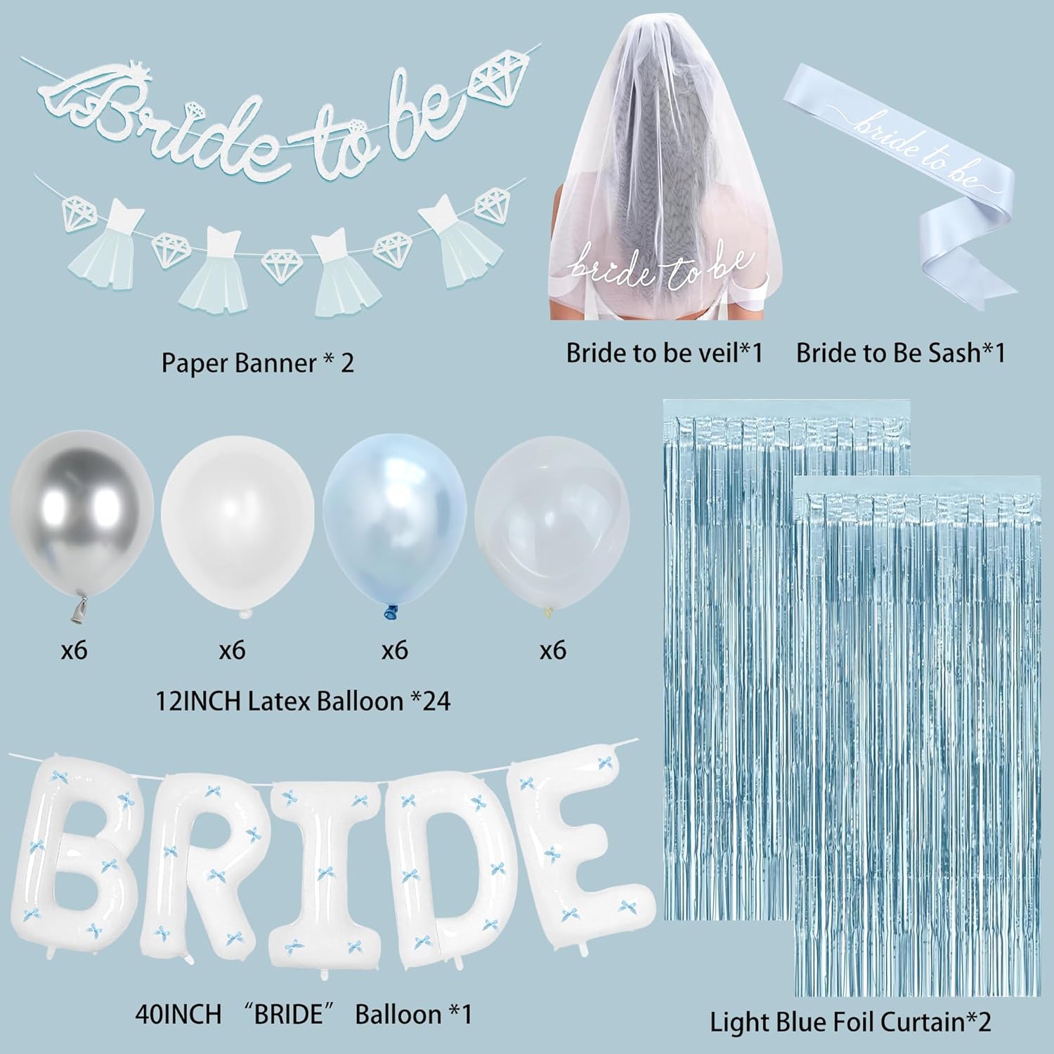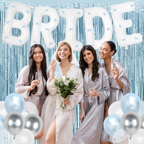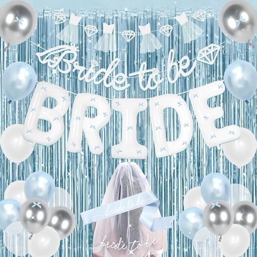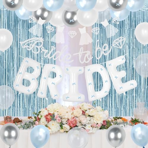- 【Surprise for Her】: Elegant light blue single party decorations, suitable for beautiful her, handsome him, romantic atmosphere; The white veil makes the bride look more beautiful, the large-sized letter BRIDE balloon, the interesting atmosphere set, add fun to the single party, not only can be used as background decorations for the party, but also can make this party more lively and vibrant. Elegant and warm decorations.