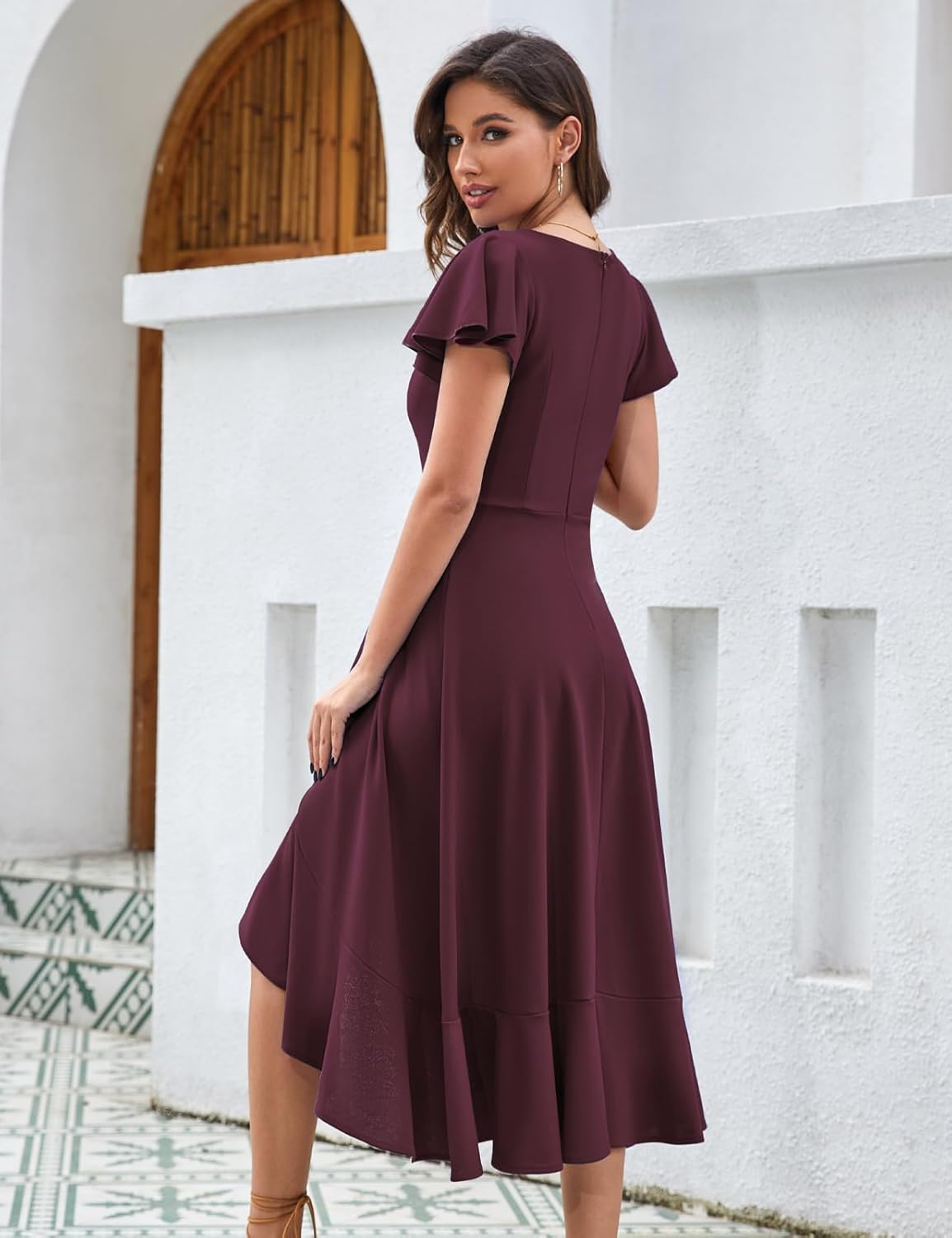 - Versatile and trendy: Elegant ruffle sleeve design adds a touch of romance to this V-neck dress. It’s the type of dress that could be worn as is and be a nice casual or through some accessories with it and it can be dressy