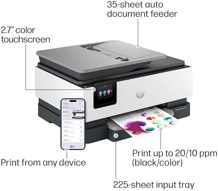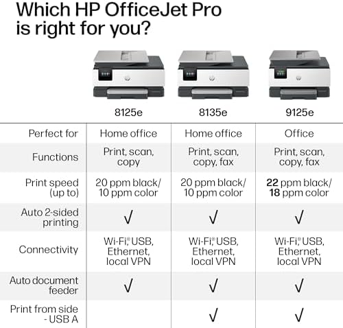 HP OfficeJet Pro 8125e Wireless All-in-One Color Inkjet Printer, Print, scan, Copy, ADF, Duplex Printing Best-for-Home Office, 3 Month Instant Ink Trial Included, AI-Enabled (405T6A)