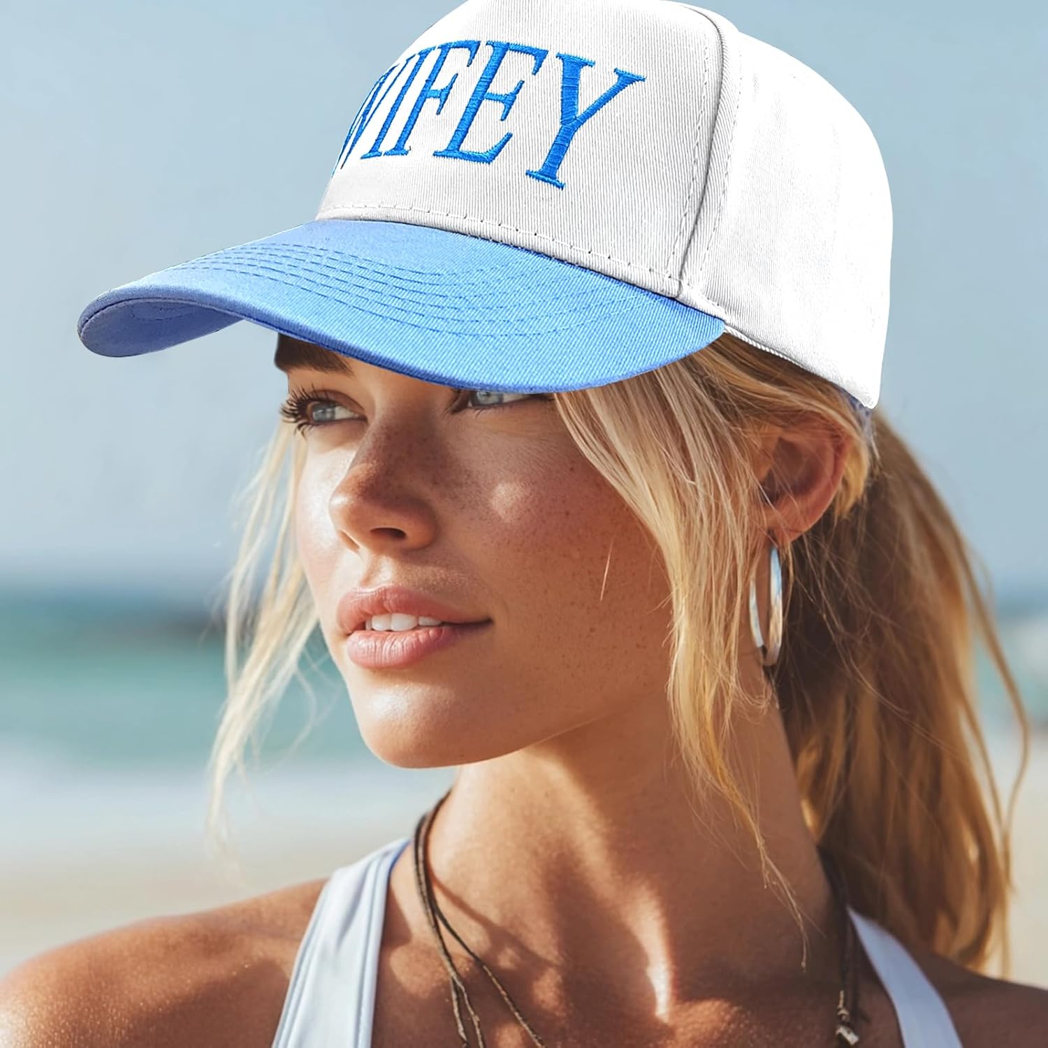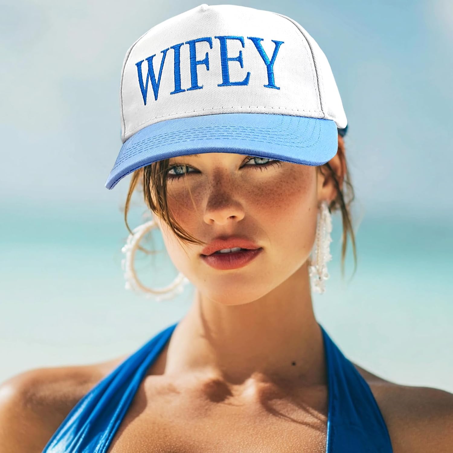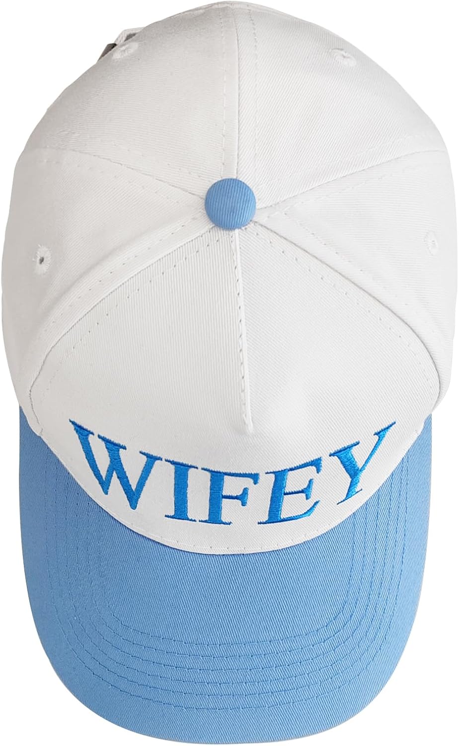 - Bridal Shower Gifts: This blue and white baseball cap has the word “WIFEY” embroidered on the front. It is cute and elegant with a understatement, making it a something blue gift for bride. Designed specifically for the bride, this wedding accessory for wedding and honeymoon, celebrating the bride’s new journey in style
