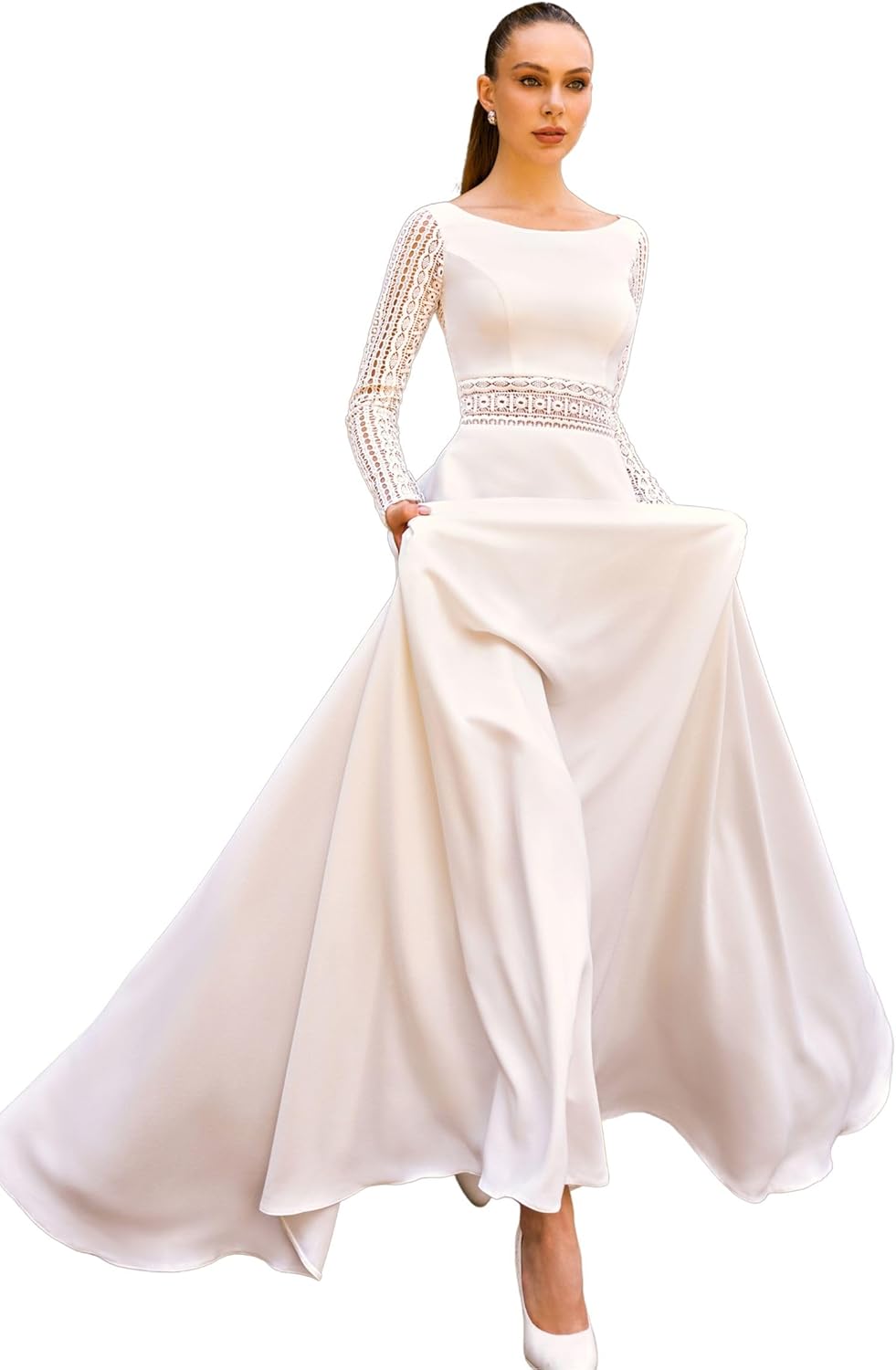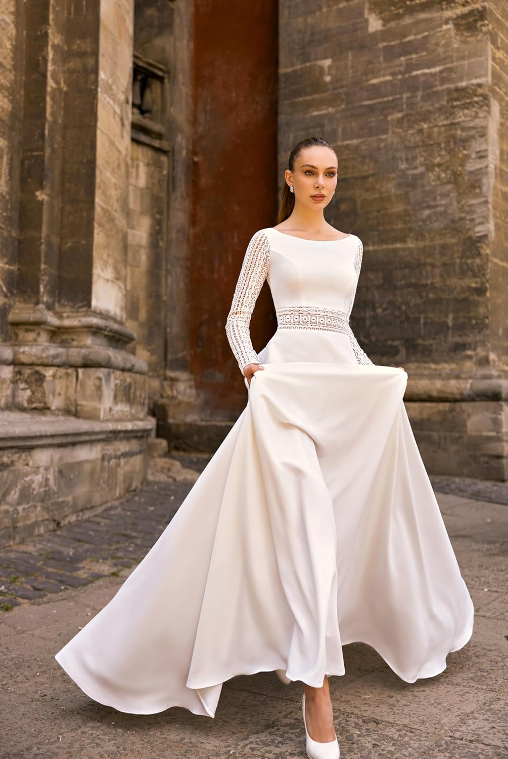 Be the first to review “Idan A-line Boat/Bateau Milk Wedding dress”