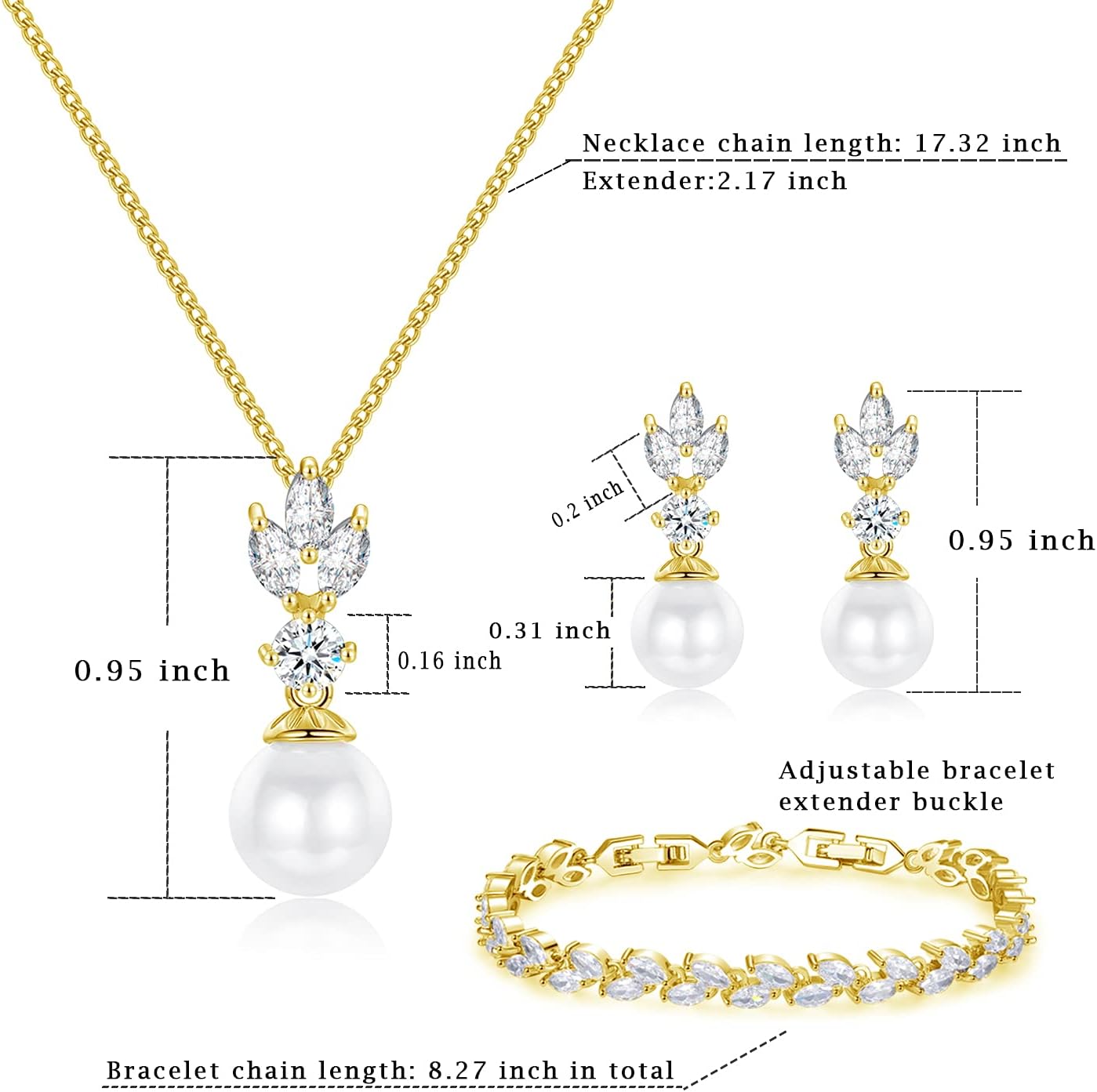 - Jewelry Set Diameter: The bracelet is approx. 21 cm / 8.27 inch in circumference, the dangle earrings is approx. 2.3cm / 0.91 inch in length, and the necklace chain is about 44cm / 17.32 inch in total length, adjustable bracelet and necklace suitable for most people