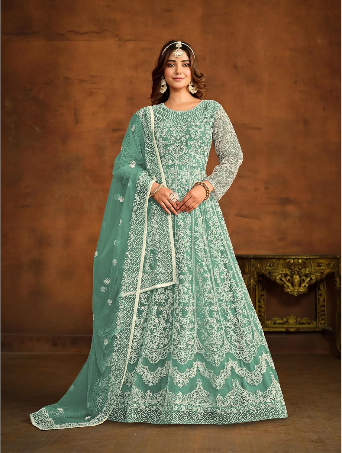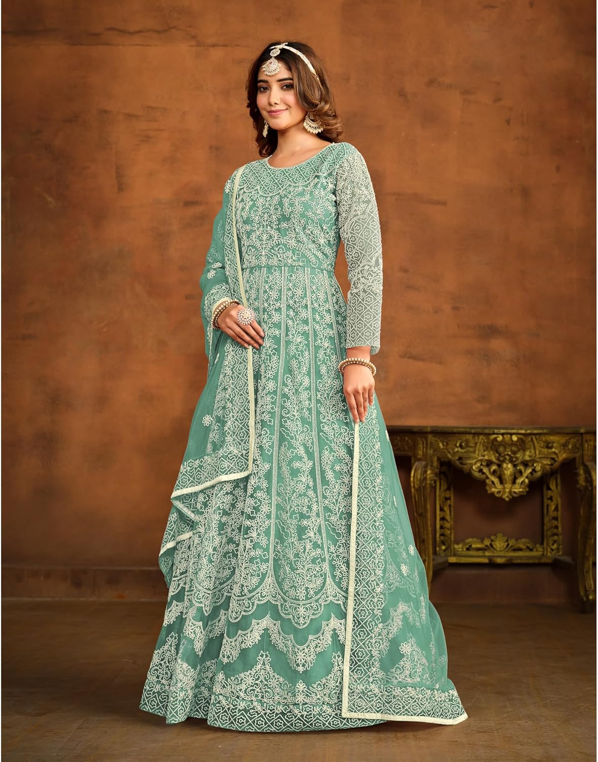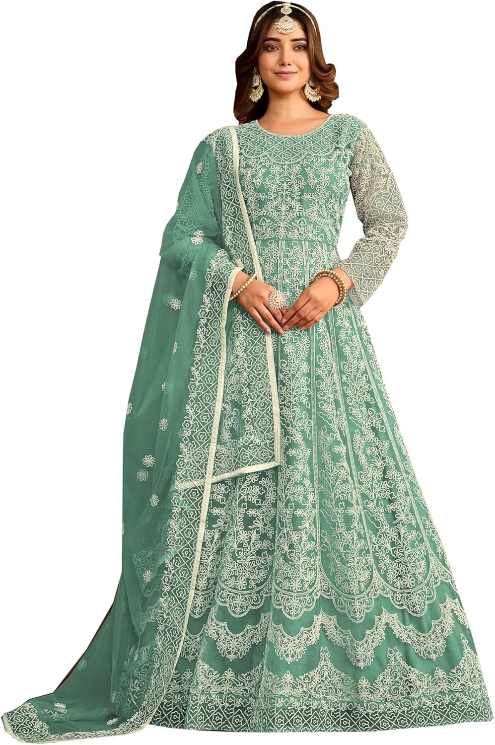 - Fabric DescriptionTop :-Net || Bottom :- Santoon || Dupatta :- Net || Size :- Max up to 44″ Inches || Work :- Embroidery Work || Style :-Anarkali Gown || Type :- Ready to Wear