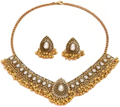 • Jewelry Set: A vintage necklace and a pair of earrings. Outfits: Ideal for any ethnic outfits like sarees, lehengas, gowns, bridal wear or for parties, festivals, dance or any special occasion or as fashion costume accessories