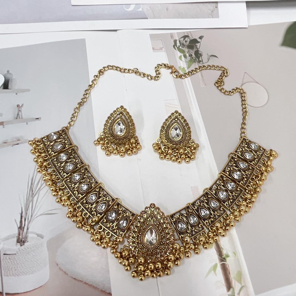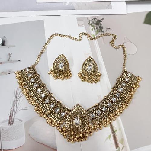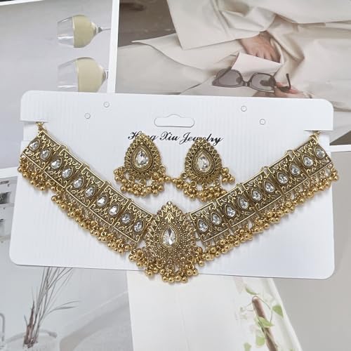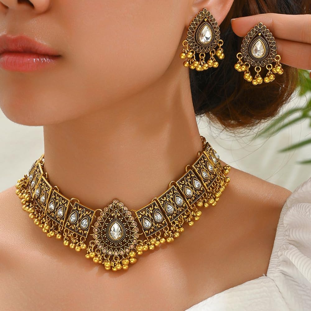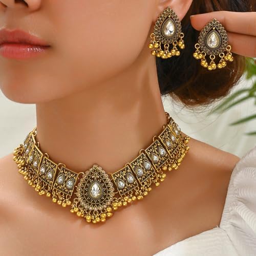 Indian Wedding Bridal Traditional Bohemian Jewellery Set for Women Girls Antique Oxidized Ethnic Party Prom Wear Statement Necklace Earring Tassel Bollywood Choker Punk Crystal Fashion Gift for Bride
